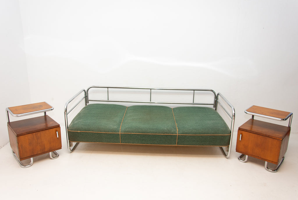 Chromed Bauhaus sofa, 1930s, attribute to Hynek Gottwald, Bohemia