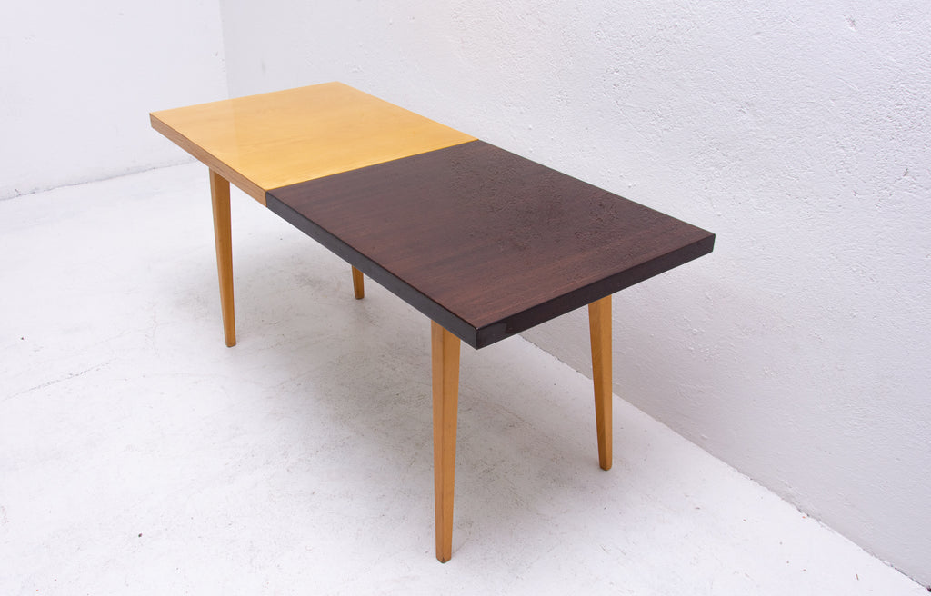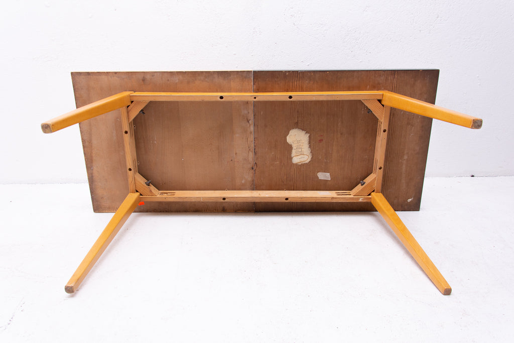 Vintage coffee table made by Jitona company in the former Czechoslovakia in the 1970´s. Features and ash wood and elm wood veneer.