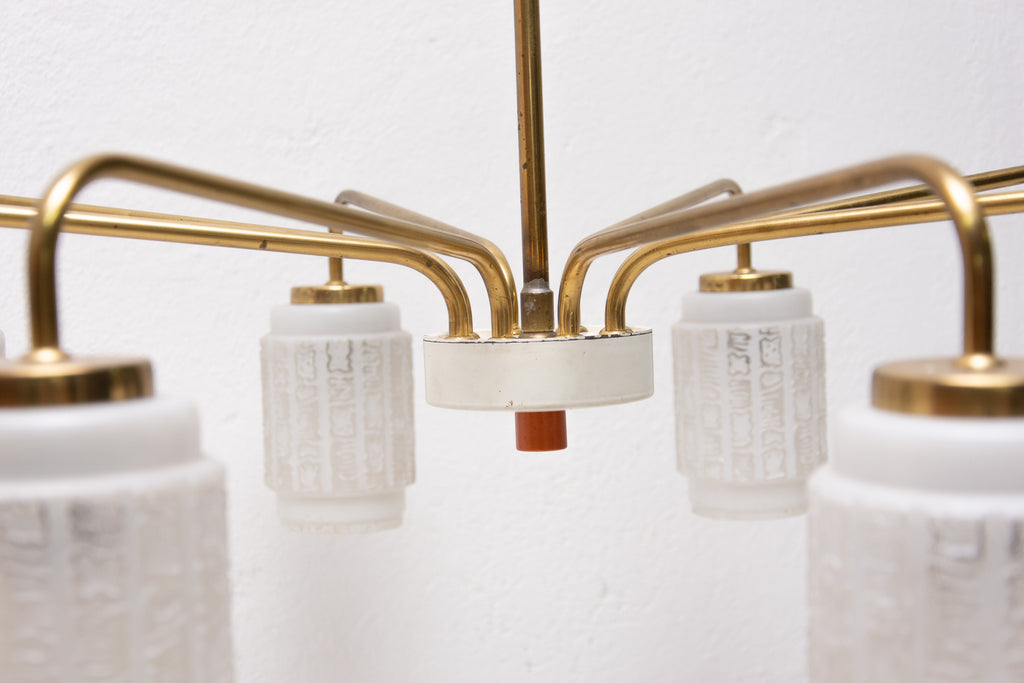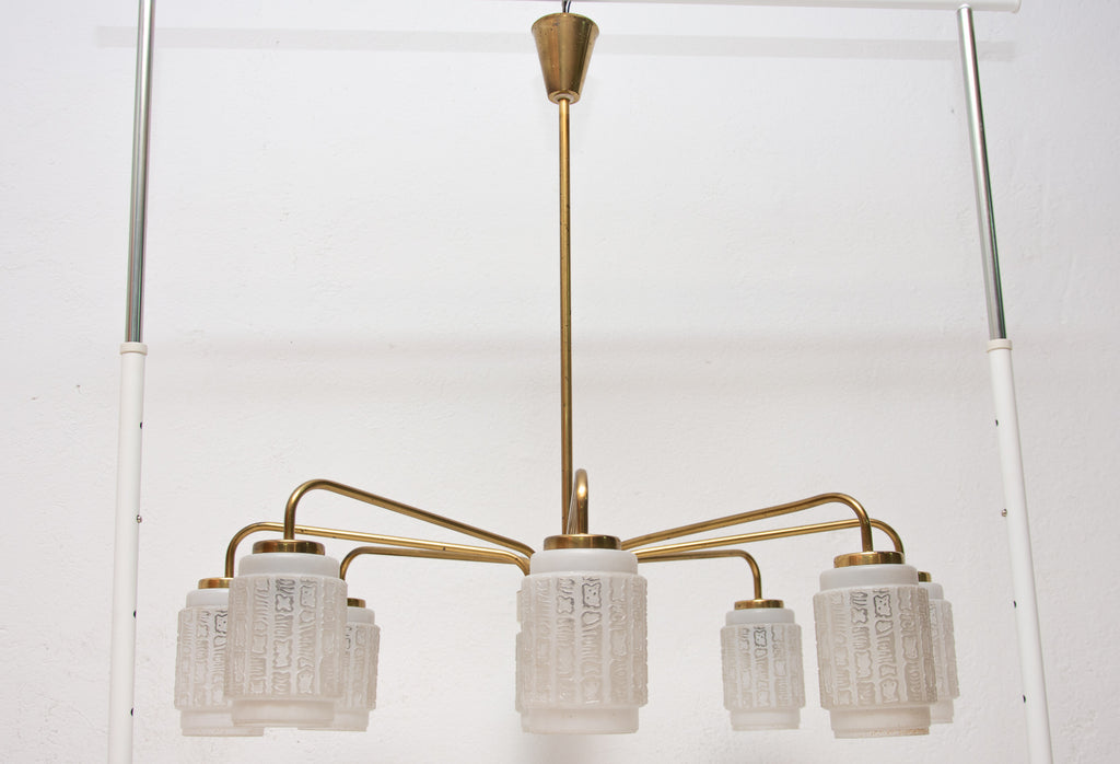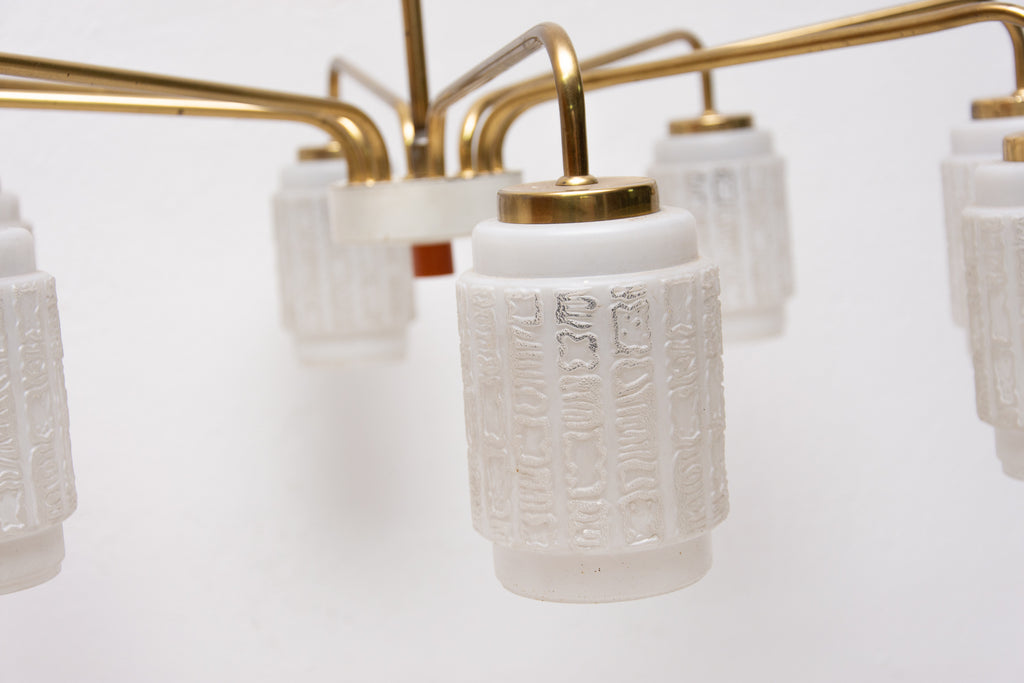 Midcentury spider eight arms chandelier with opaline glass lampshades, 1960s