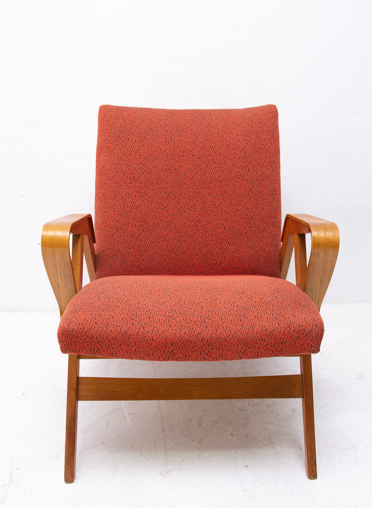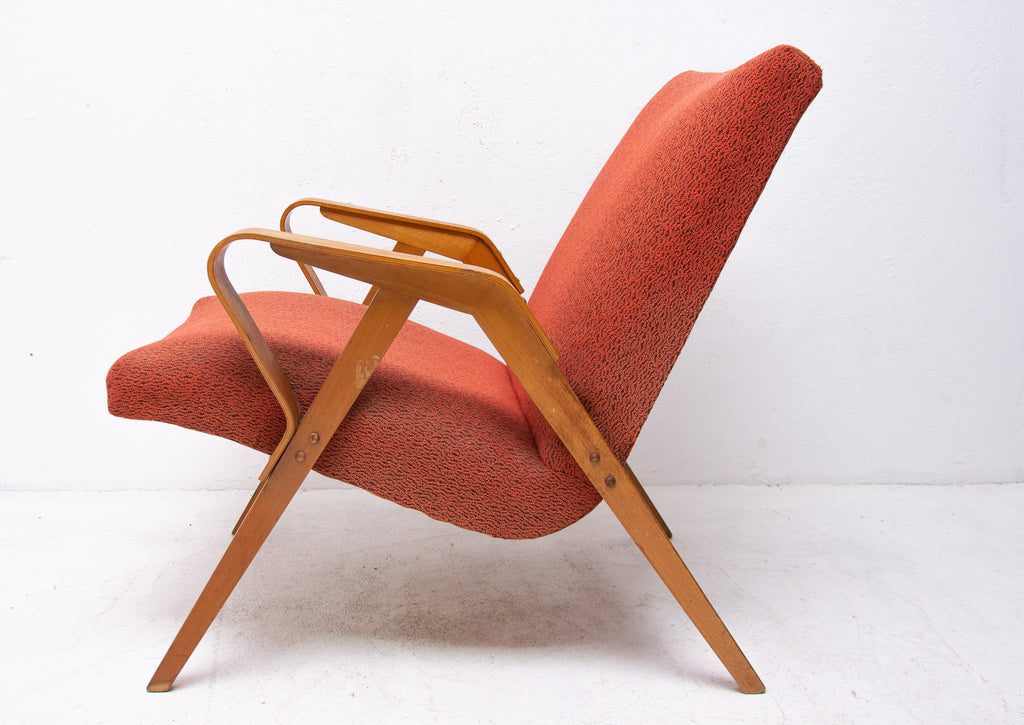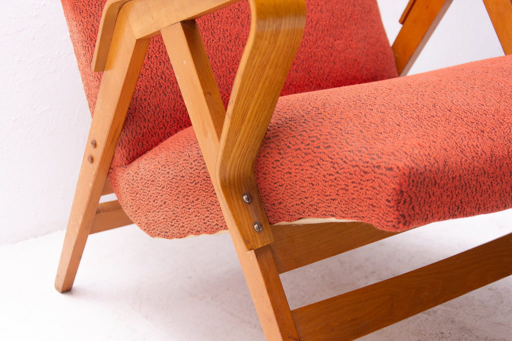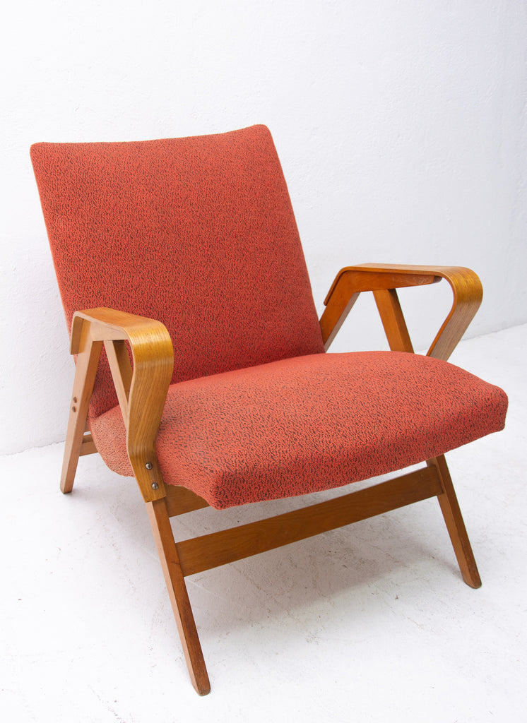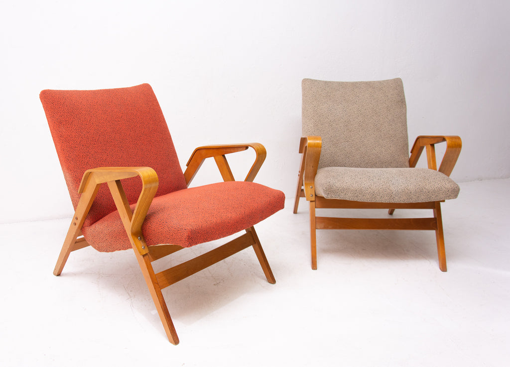 These Czechoslovak lounge armchairs No.24-23 were designed by Frantisek Jirák for Tatra Nabytok in the former Czechoslovakia in the 1960´s. The design of these chairs followed the huge success of the Czechoslovak pavilion at the Brussels Expo 58.