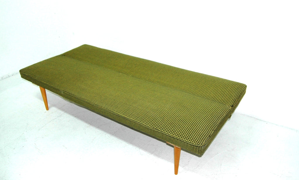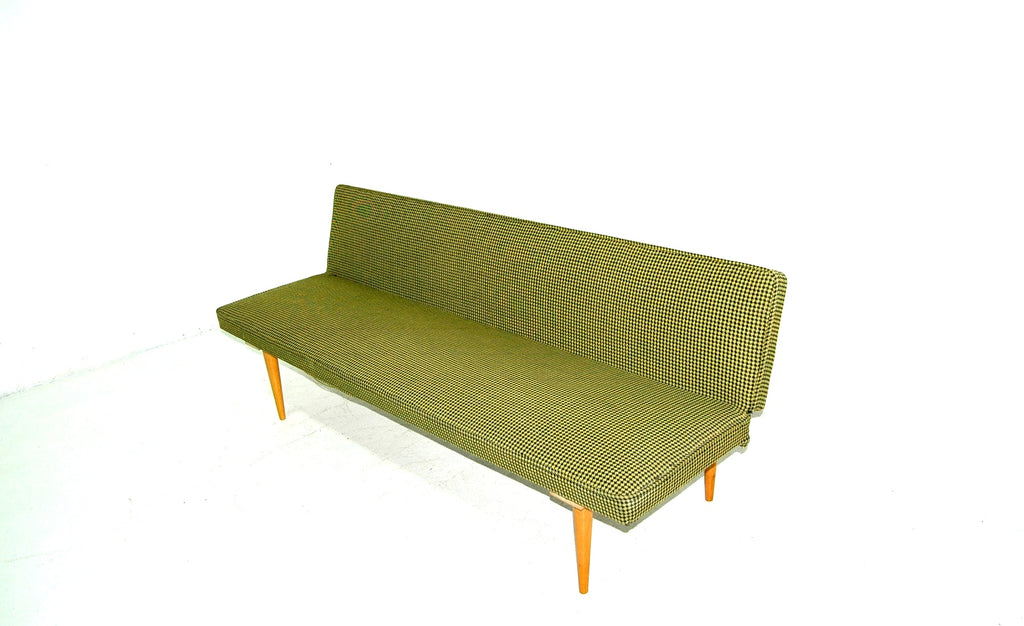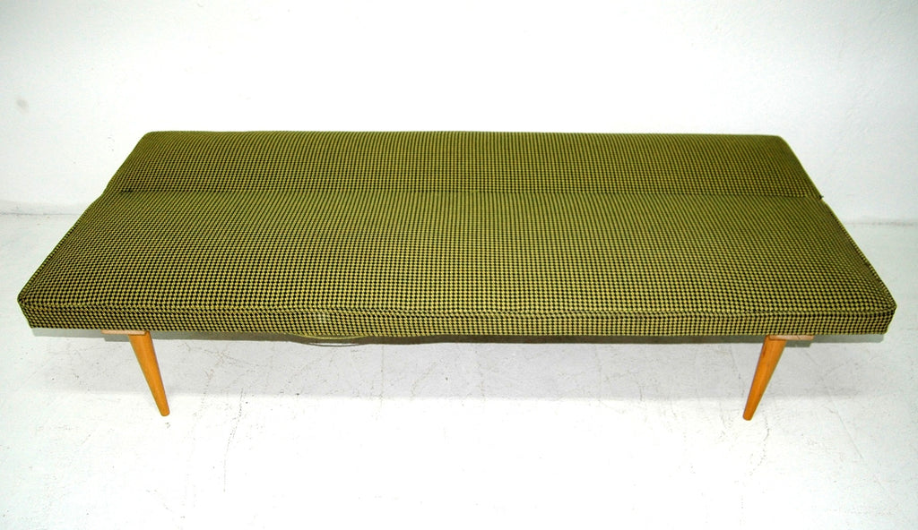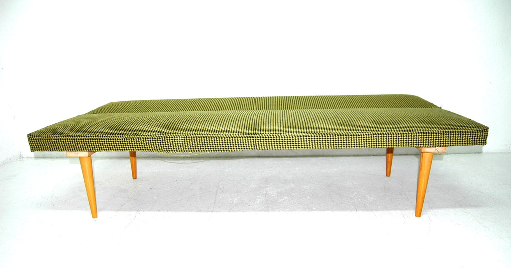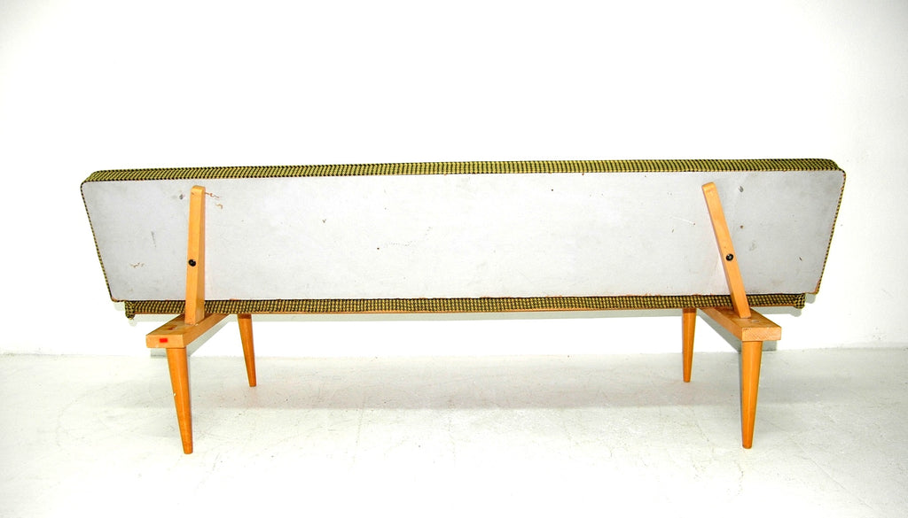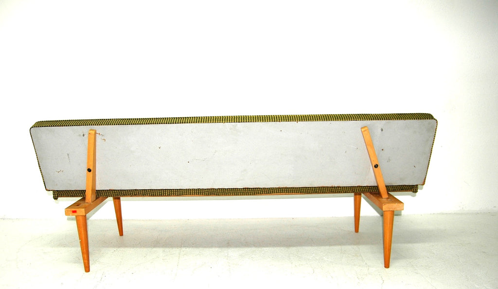 Mid century adjustable sofa-bench designed by the Czech famous designer Miroslav Navrátil in the 1960´s. Made in Czechoslovakia. It features very attractive and simple design. Material: fabric, beechwood. It´s a typical example of Czechoslovak design after the huge success of the Czechoslovak pavilion at Expo 58 in Brussels. The wooden structure and upholstery are in good Vintage condition, consistent with age and use.
