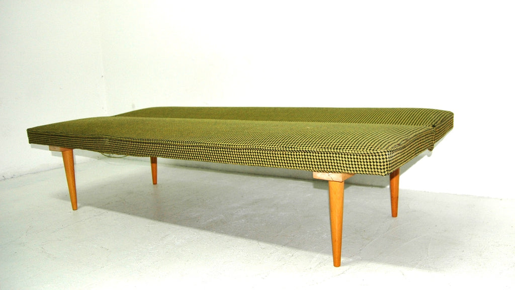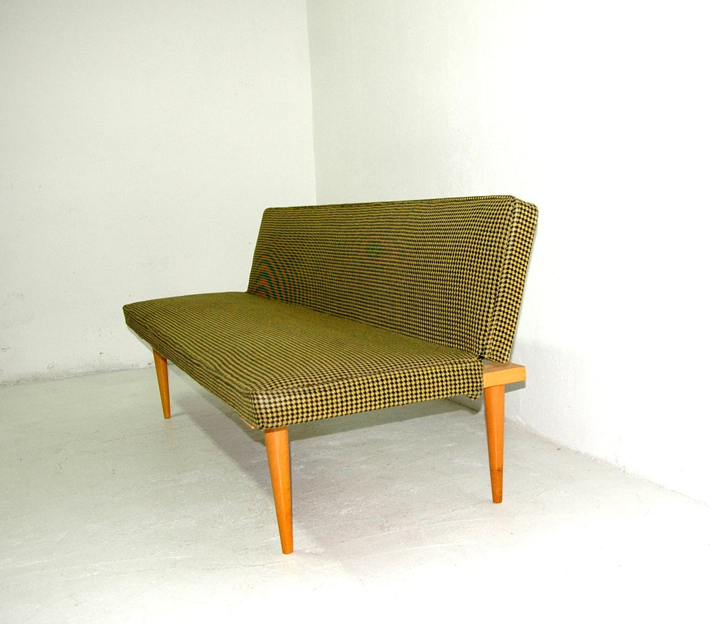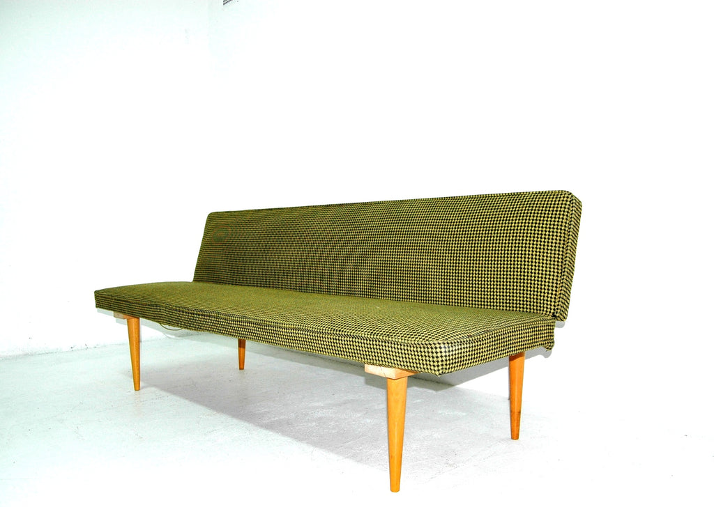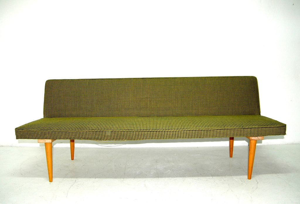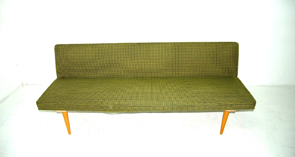 Mid century adjustable sofa-bench designed by the Czech famous designer Miroslav Navrátil in the 1960´s. Made in Czechoslovakia. It features very attractive and simple design. Material: fabric, beechwood. It´s a typical example of Czechoslovak design after the huge success of the Czechoslovak pavilion at Expo 58 in Brussels. The wooden structure and upholstery are in good Vintage condition, consistent with age and use.