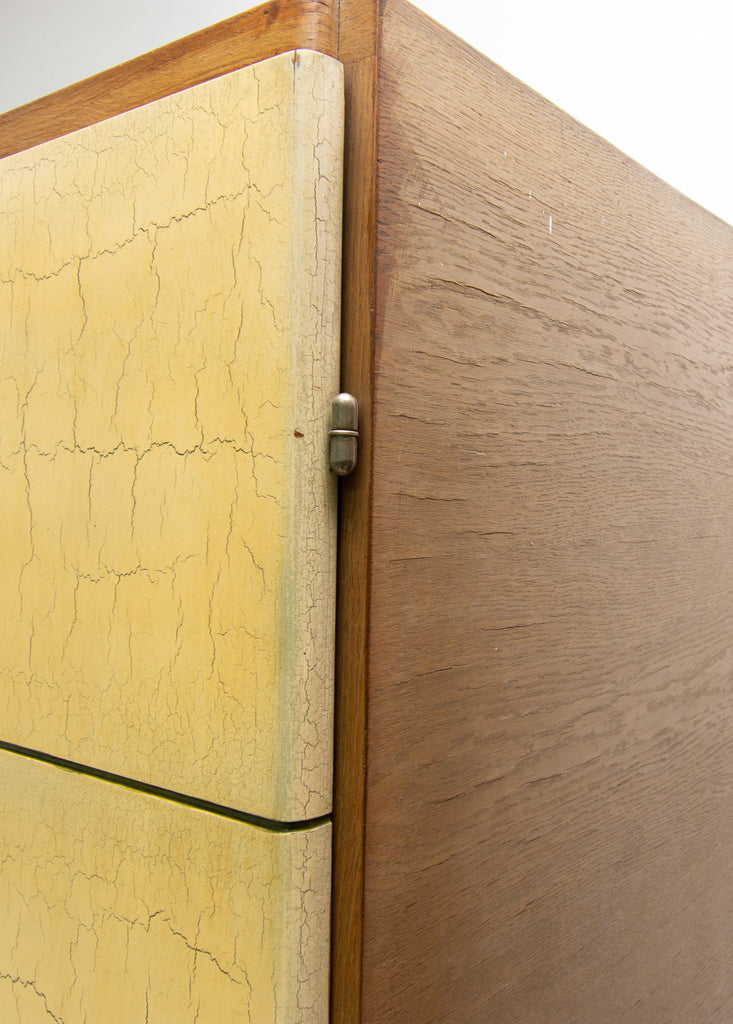 Cabinet doors are covered with paint in the style of genuine leather, in Italian-style furniture design. Oak veneer.