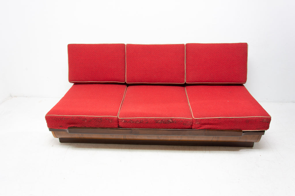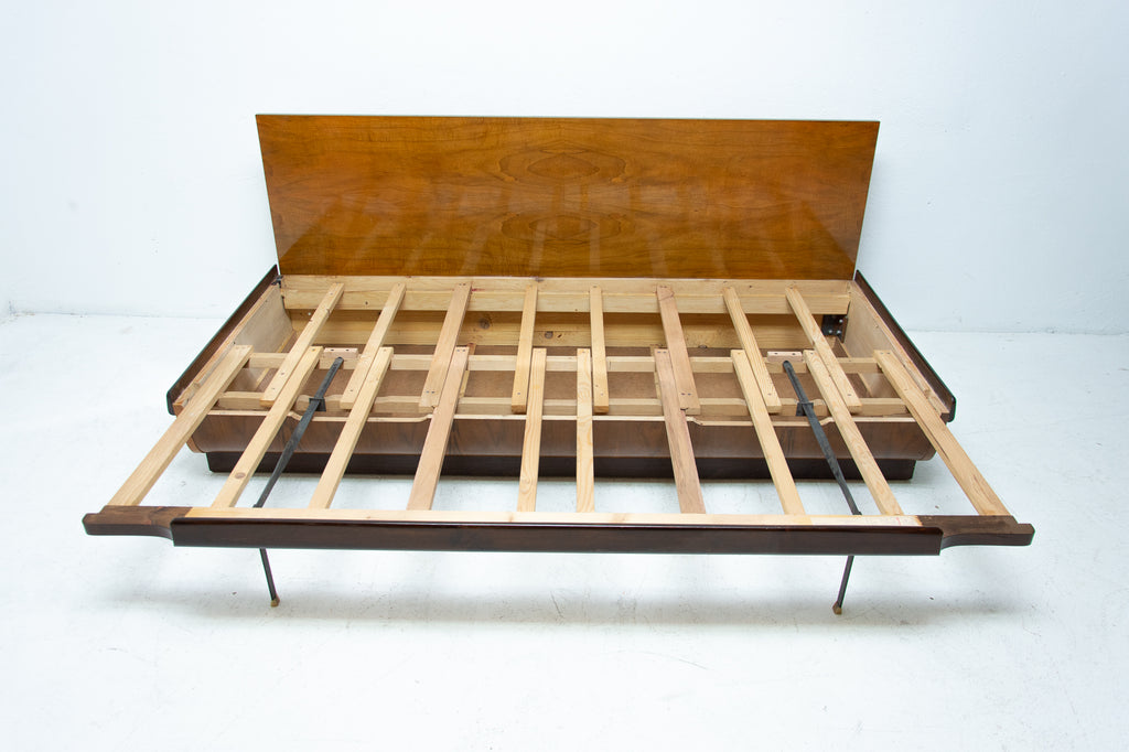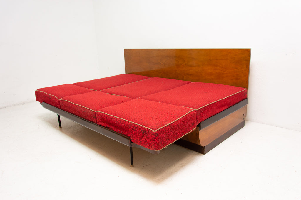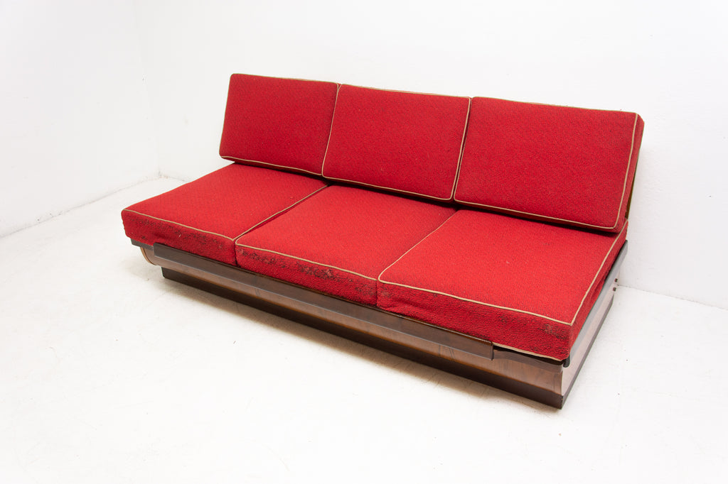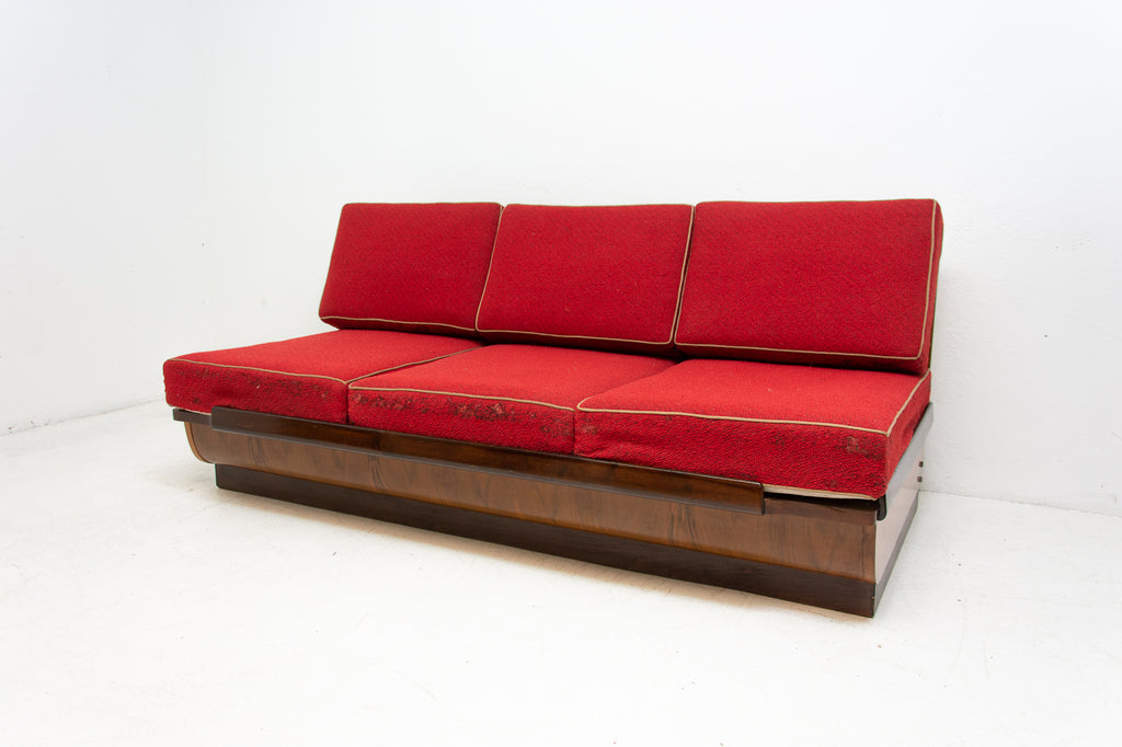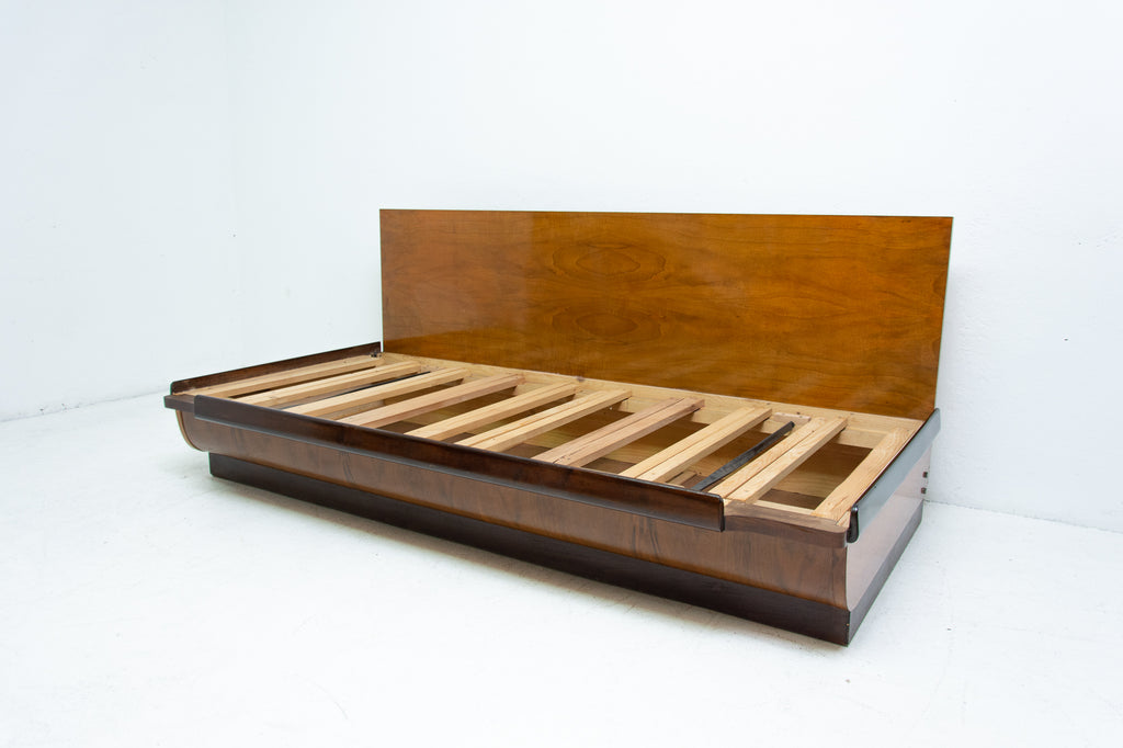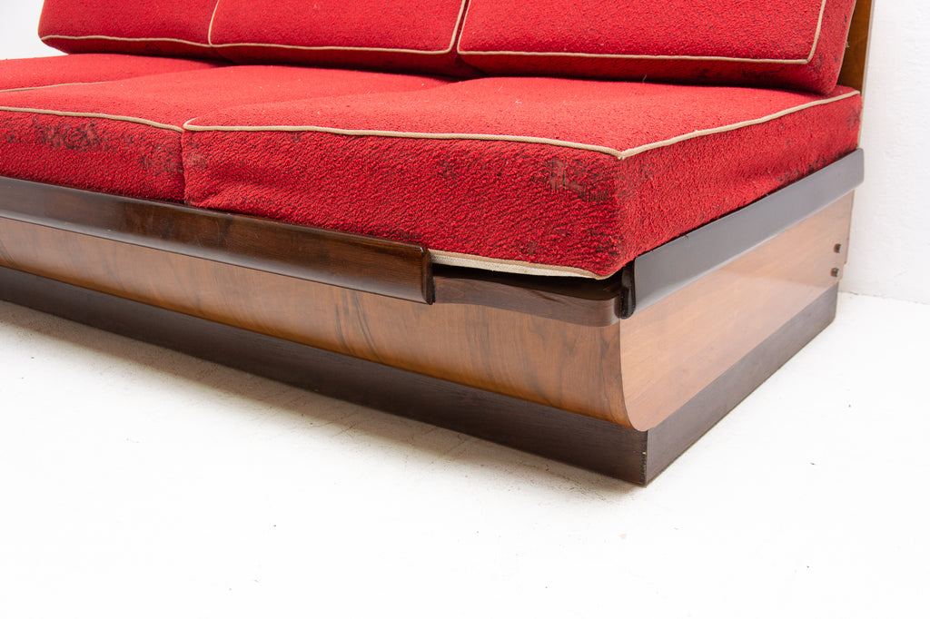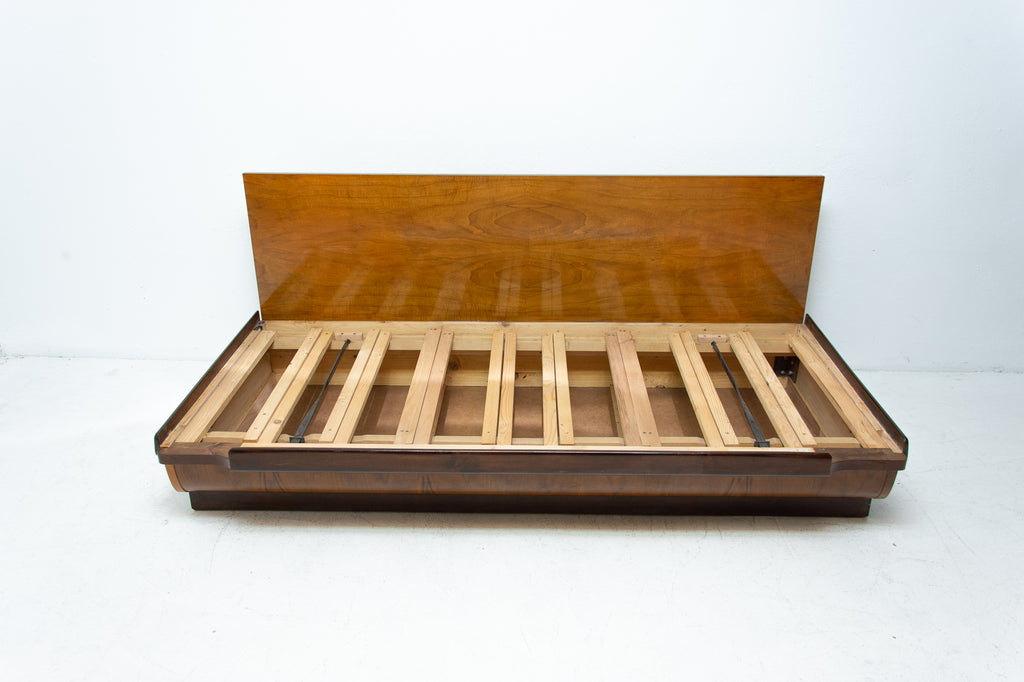 Mid century sofabed in walnut by Jindrich Halabala for UP Zavody, 1950s