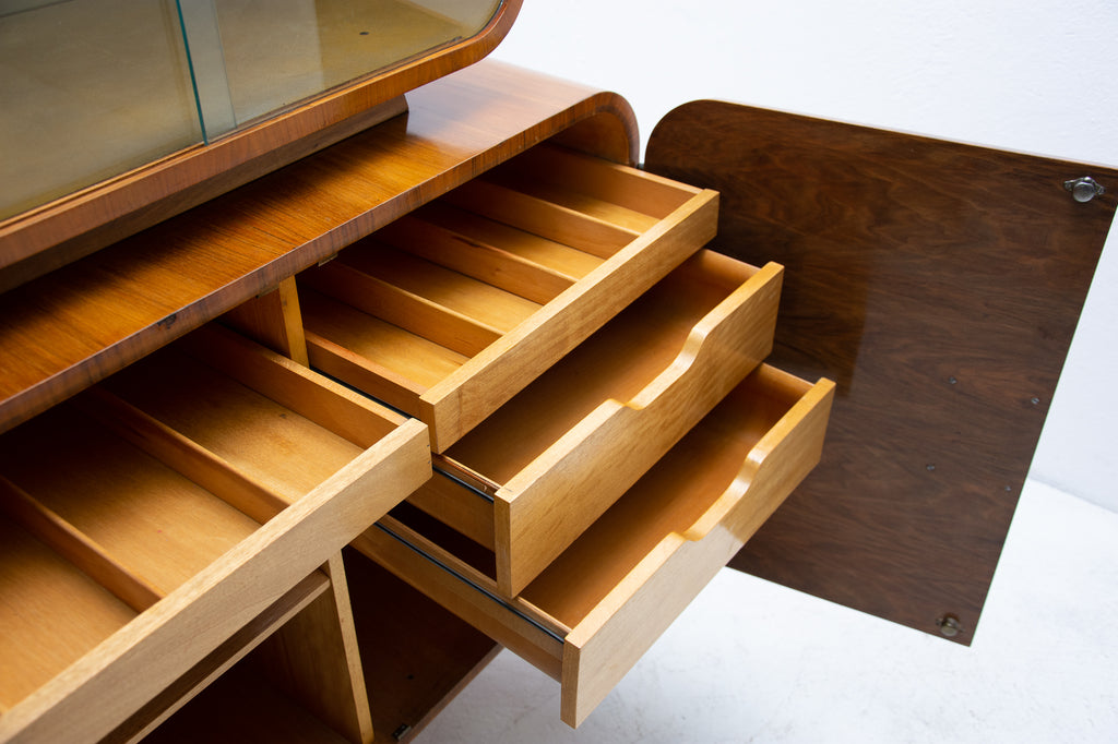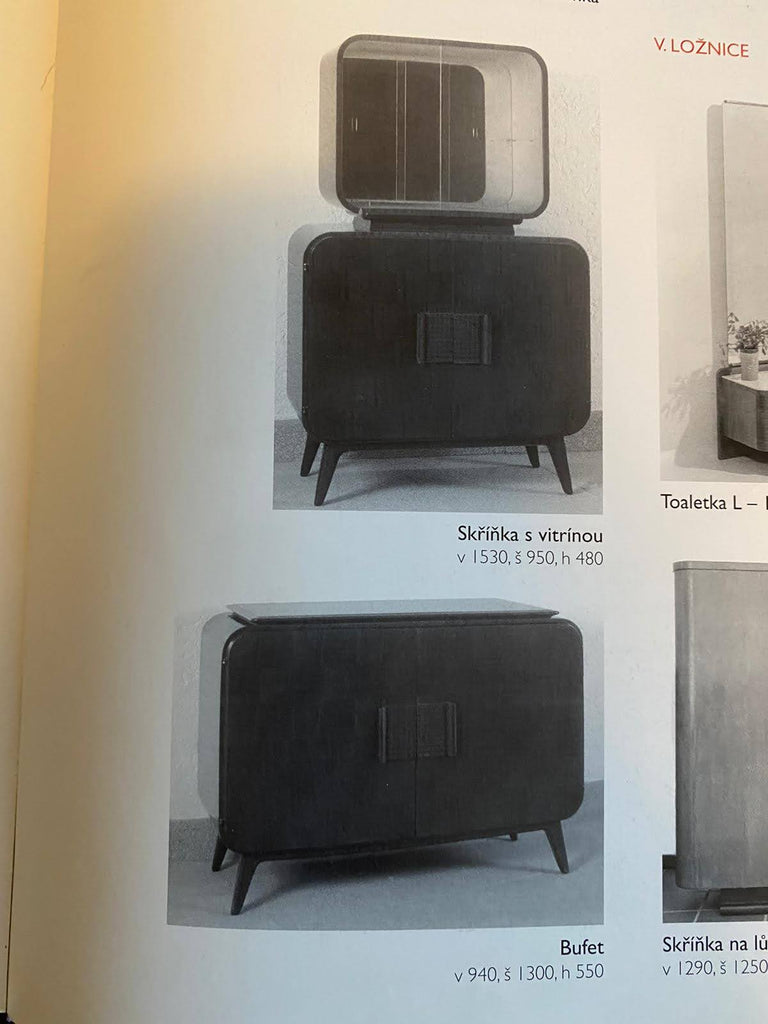 This mid-century display case called "Television" was designed by world-renowned Czechoslovak architect Jindřich Halabala in 1947 and it was manufactured in UP závody Brno in a limited edition for only two years since 1946.
