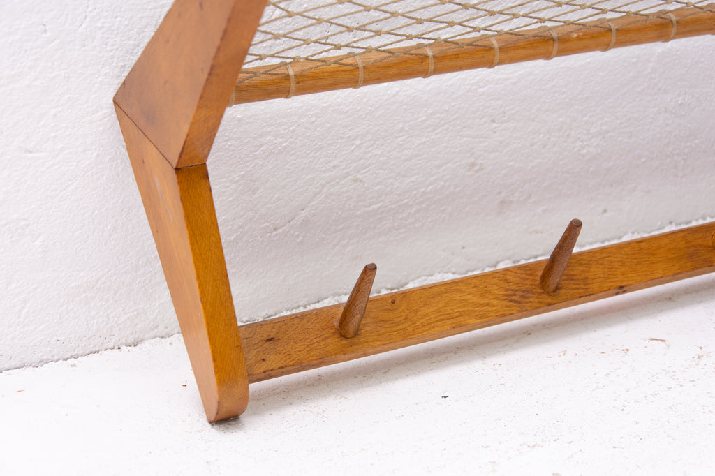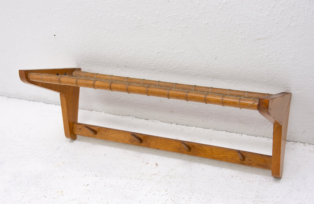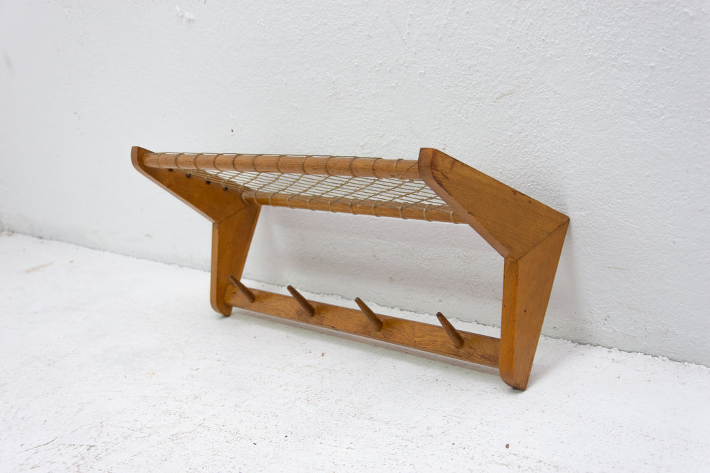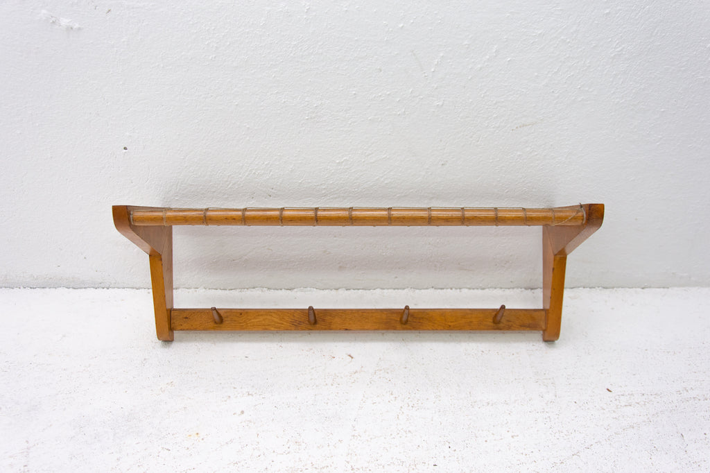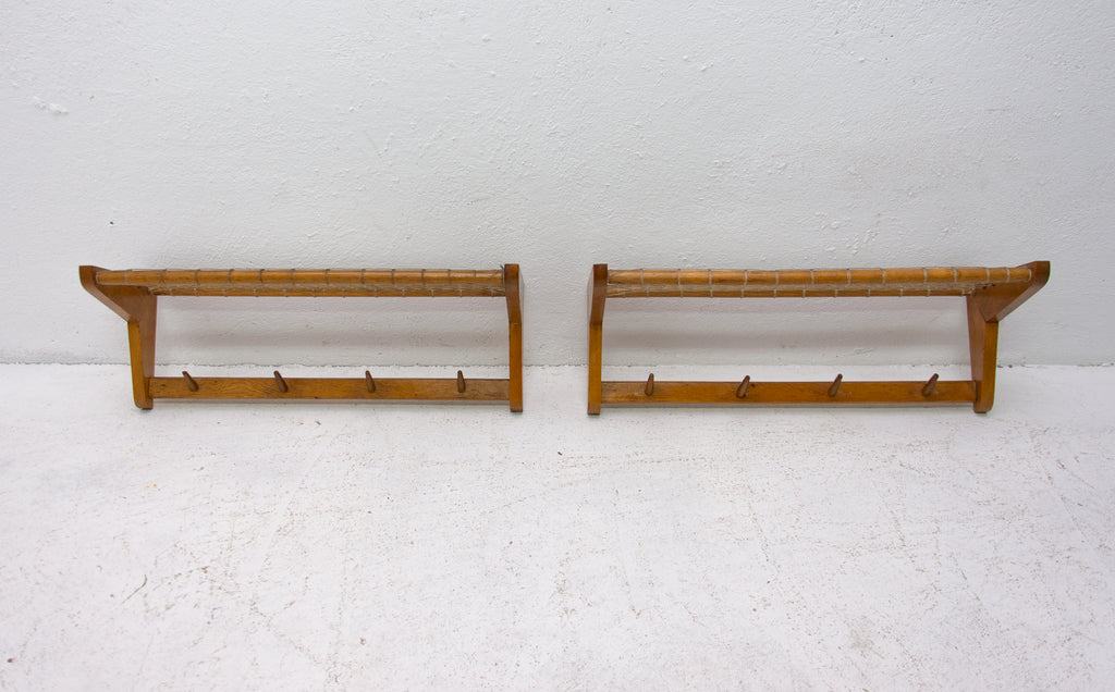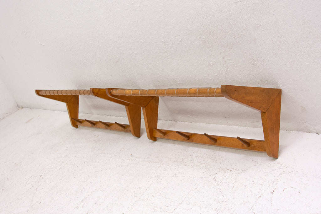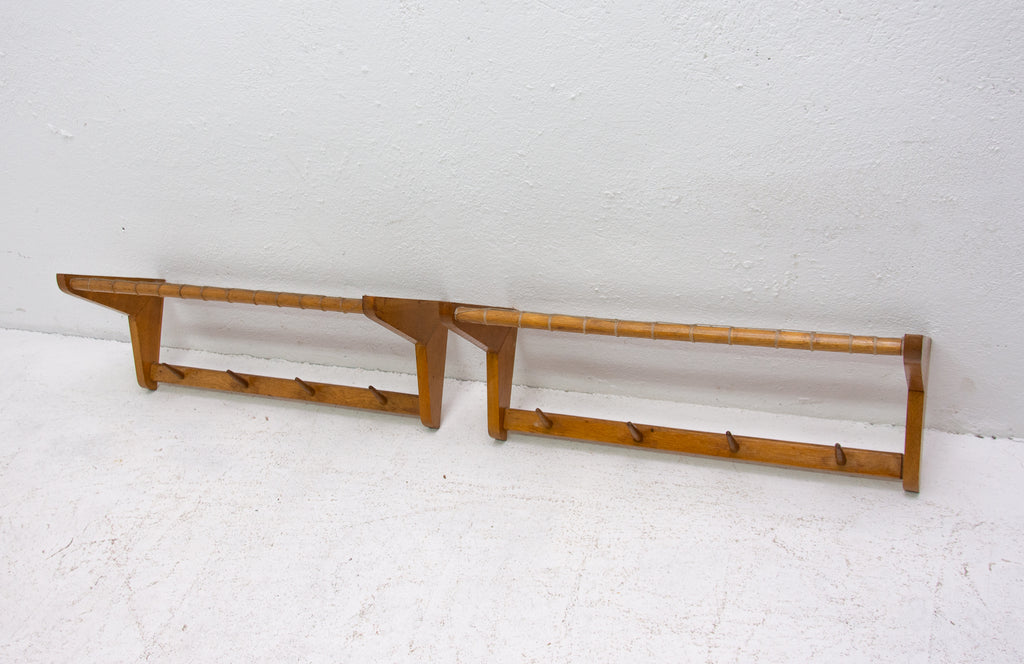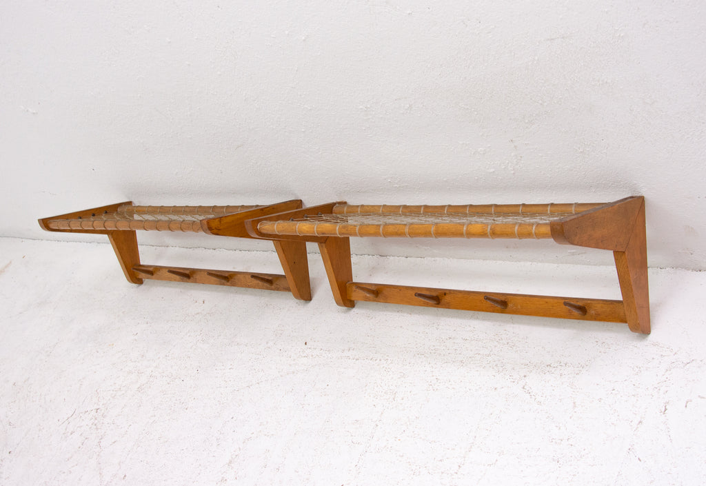 Pair of mid century wall shelves, made in the former Czechoslovakia in the 1960´s. It was produced by Krásná Jizba company. It's made of beech wood and an intertwined upper part. In very good Vintage condition. Price is for the pair