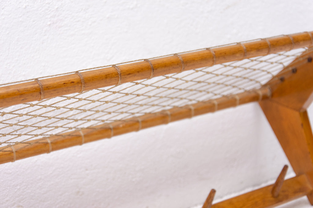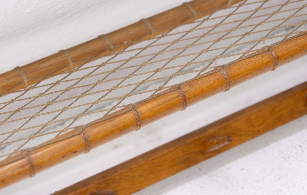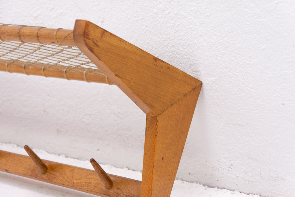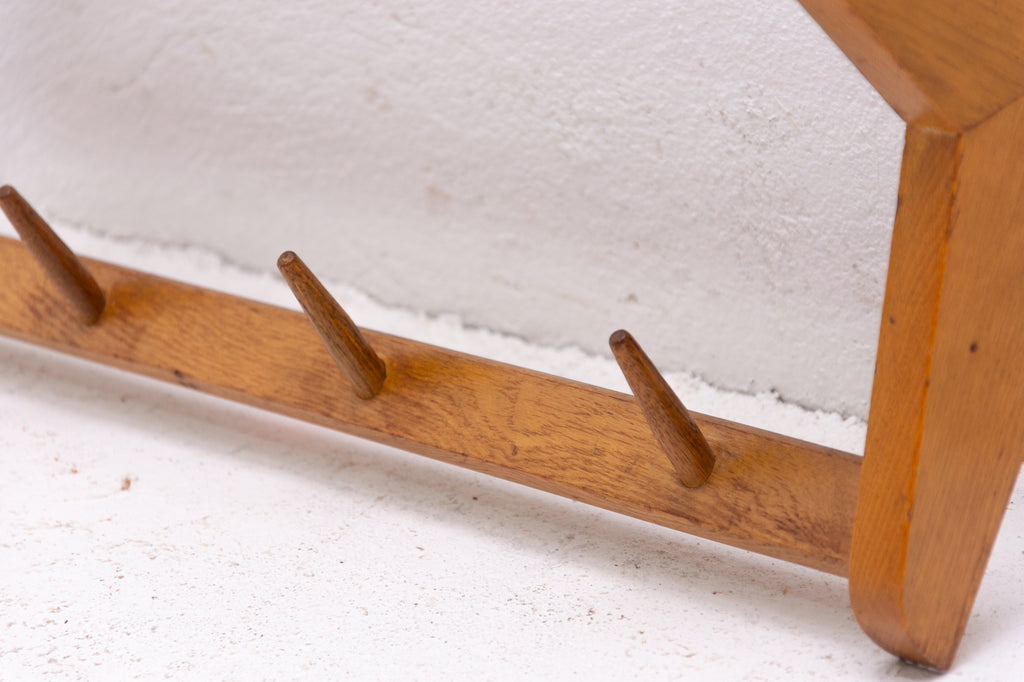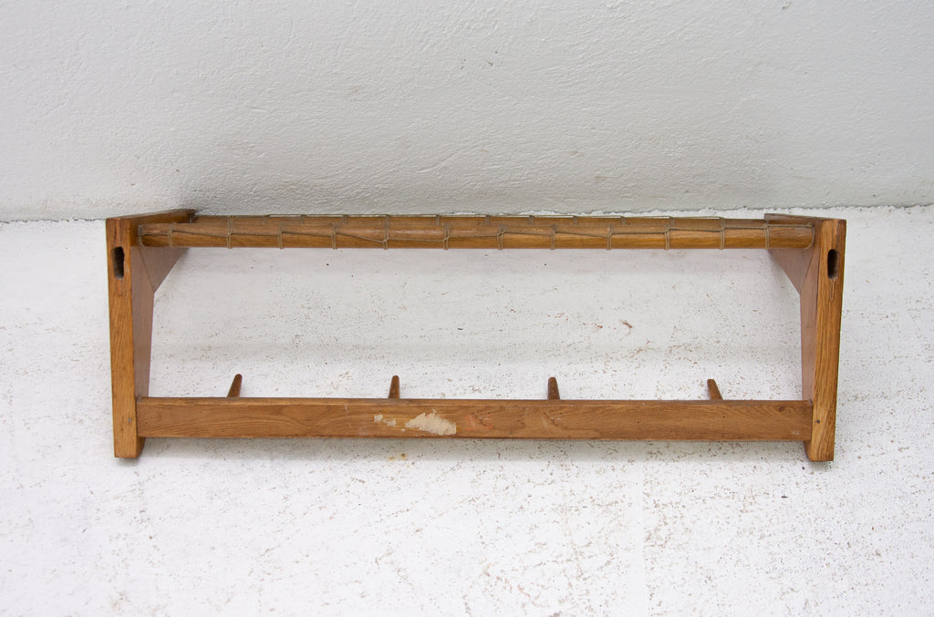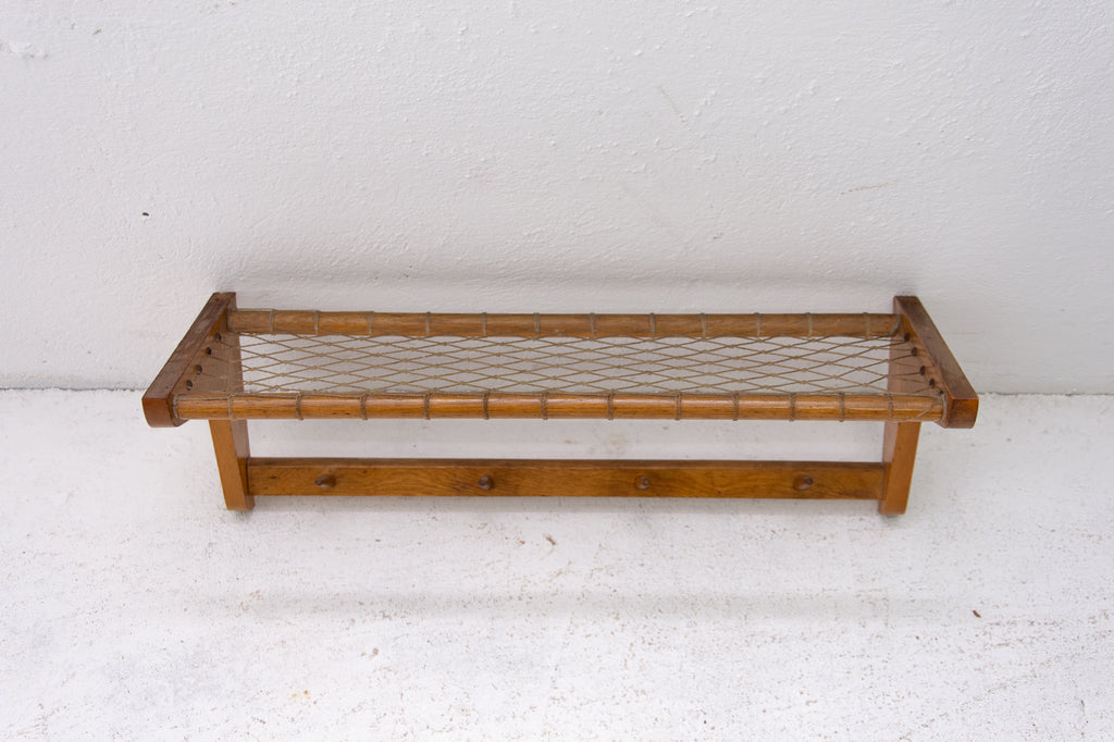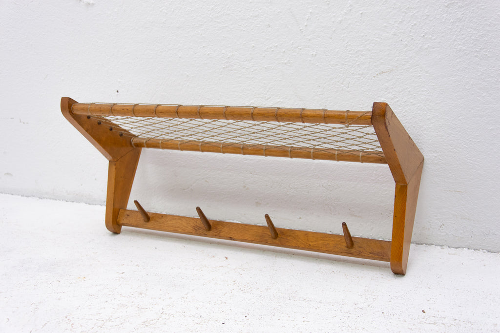 Pair of mid century wall shelves, made in the former Czechoslovakia in the 1960´s. It was produced by Krásná Jizba company. It's made of beech wood and an intertwined upper part. In very good Vintage condition. Price is for the pair
