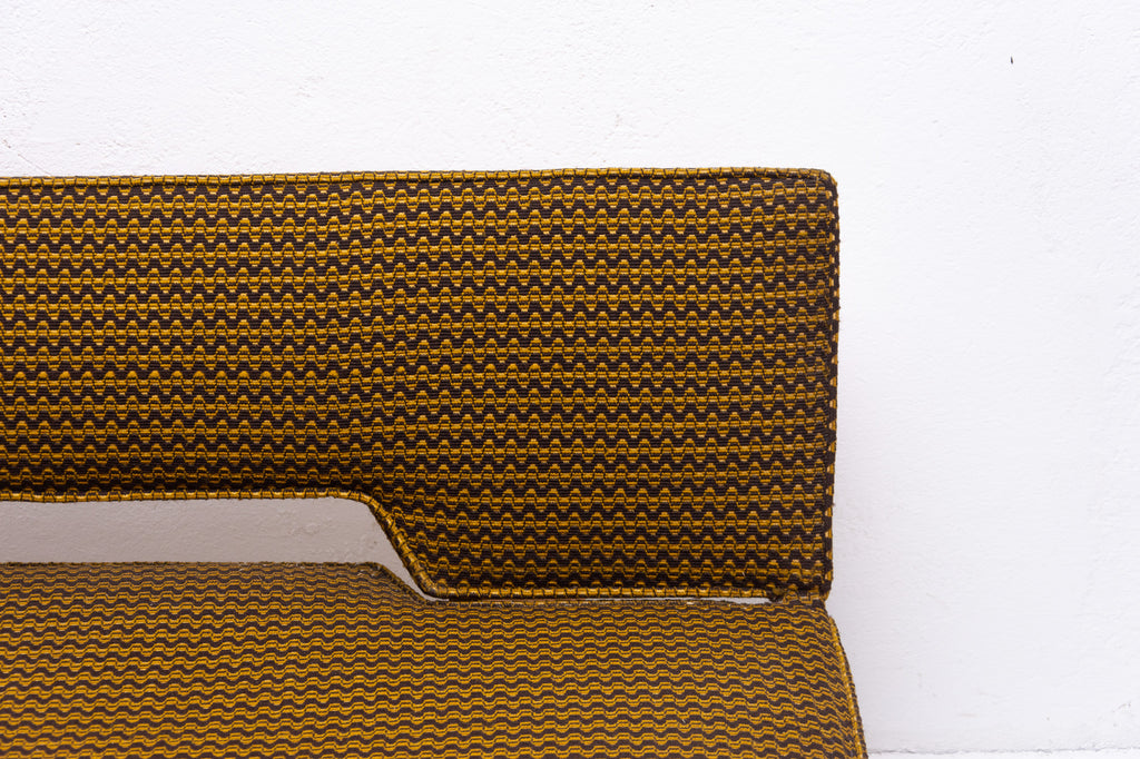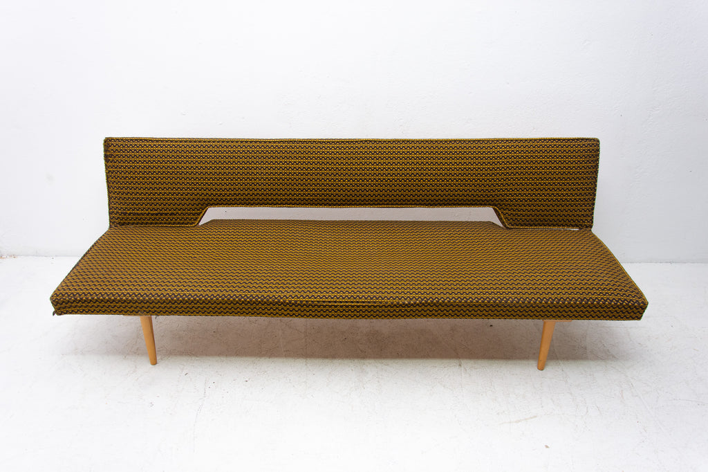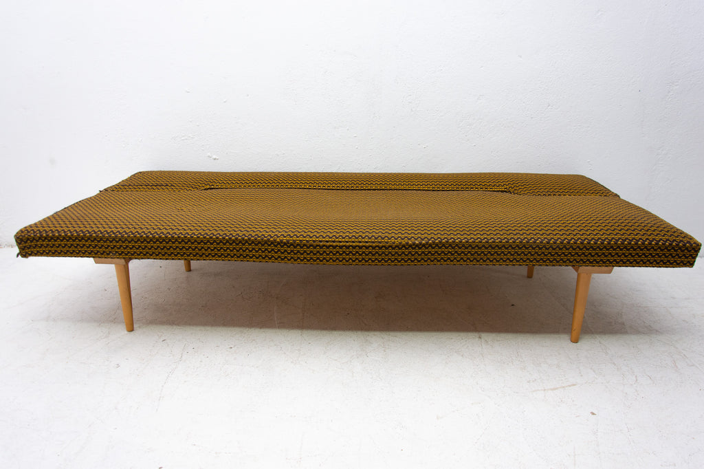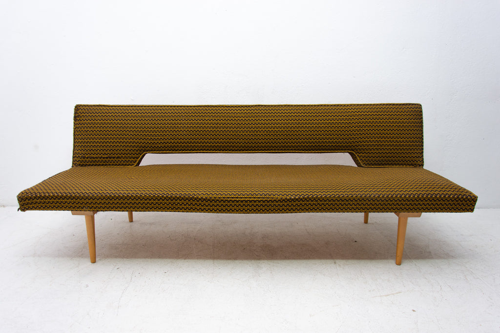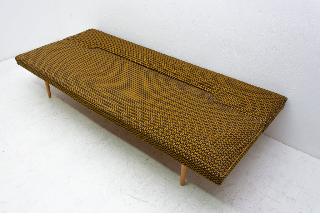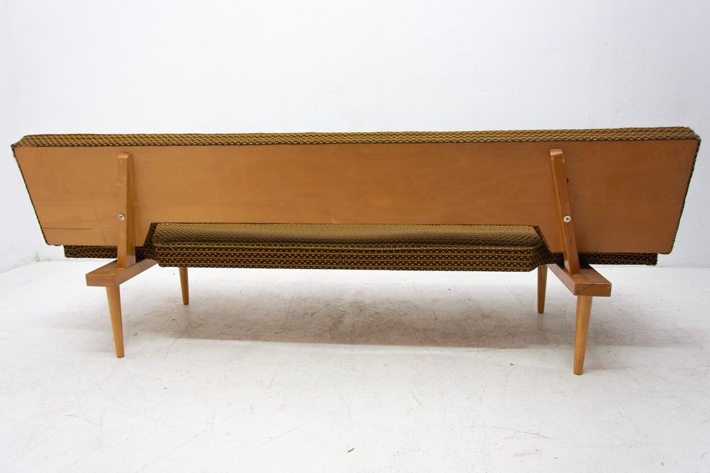 Midcentury adjustable sofa-bench designed by the Czech famous designer Miroslav Navrátil in the 1960s. Made in Czechoslovakia. It features wery attractive and simple design. Material: fabric, beechwood. It´s a typical example of Czechoslovak design after the huge success of the Czechoslovak pavilion at Expo 58 in Brussels. The wooden structure and upholstery are in very good Vintage condition, consistent with age and use.