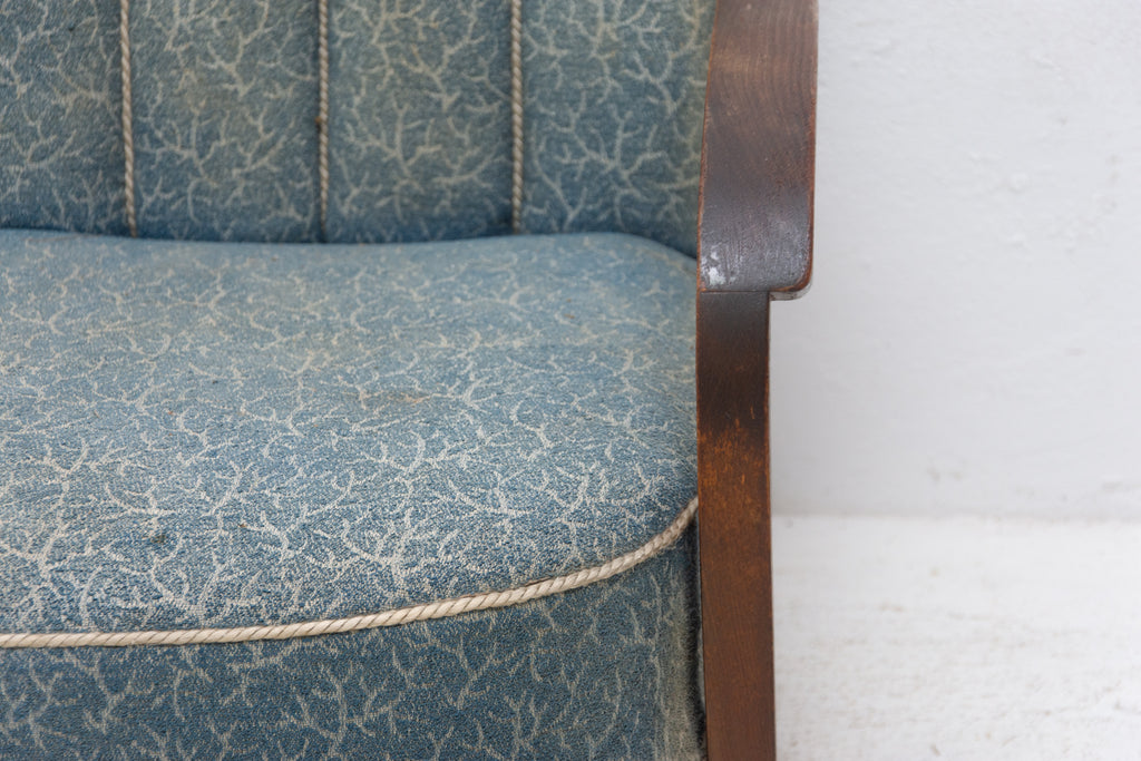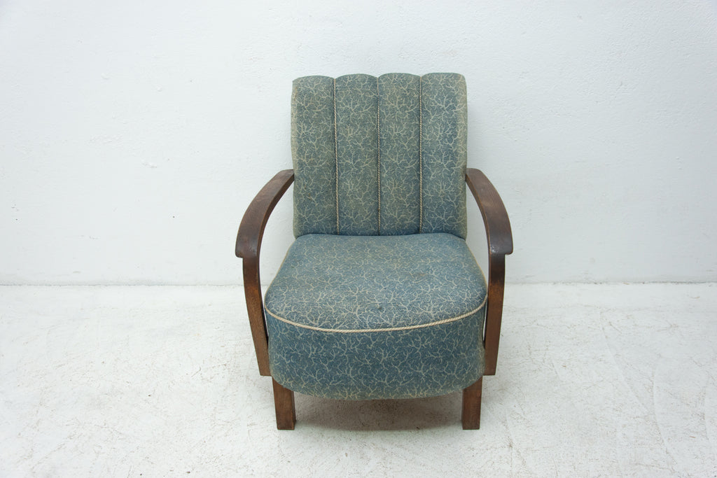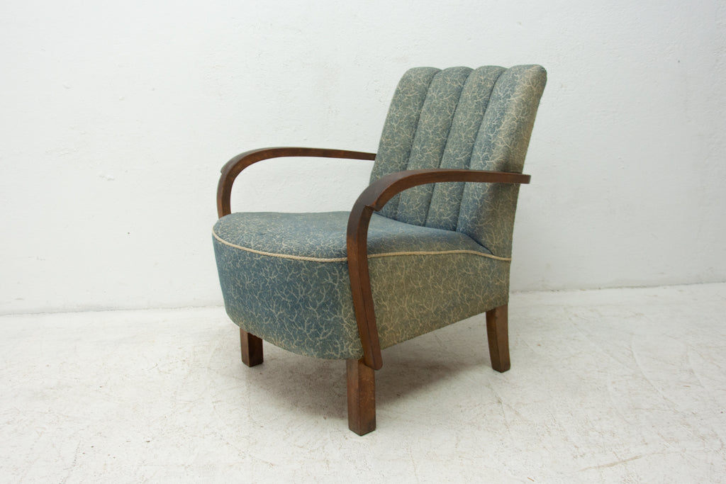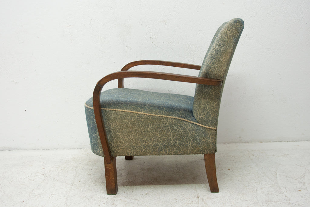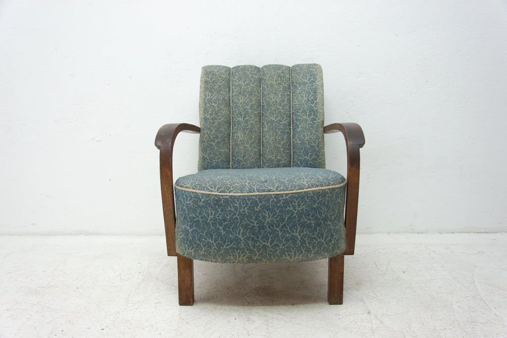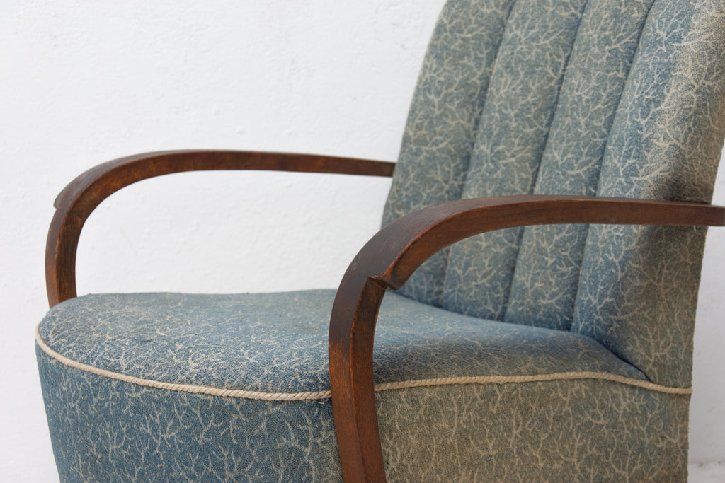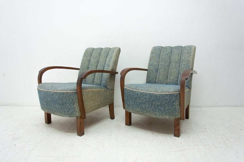 These bentwood armchairs Cataloque No. were designed by Jindřich Halabala and produced by UP Závody in the 1930´s. The chairs are stable and comfortable. The structure and upholstery are in good preserved condition, the fabric is faded in places. See pictures. Price is for the pair.