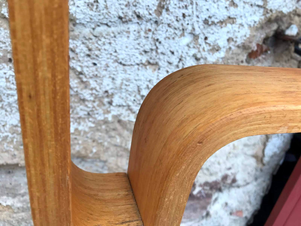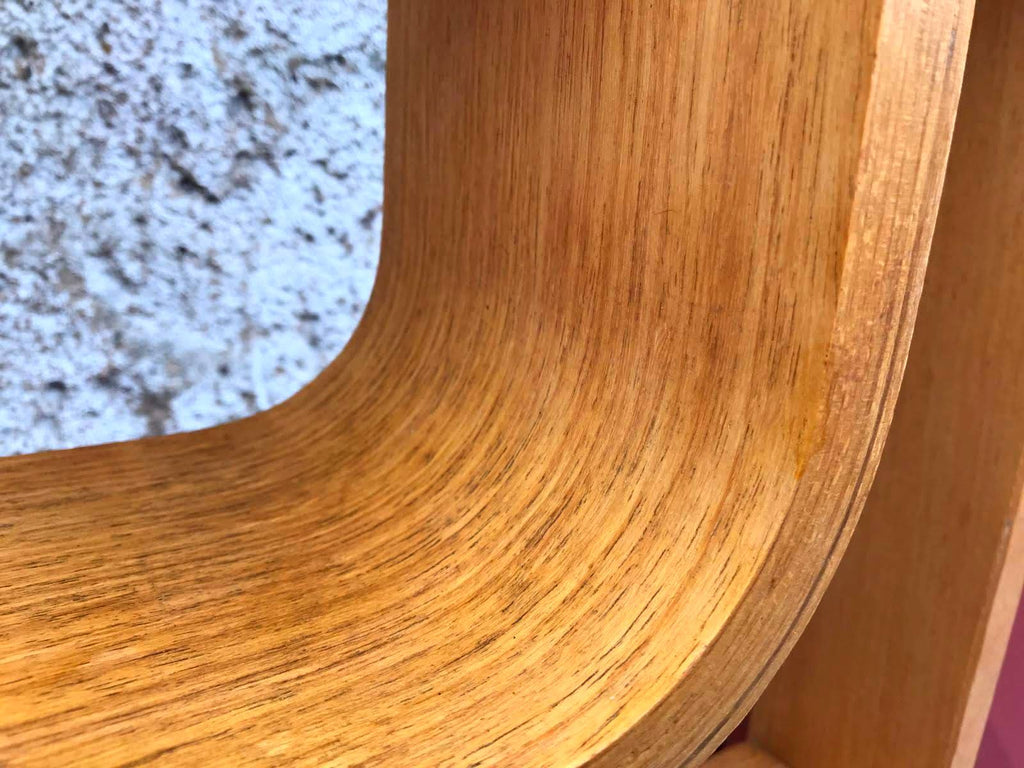 This room/wall divider was designed by the Czech architect Ludvik Volak and produced by Drevopodnik Holesov in the former Czechoslovakia in the 1960s. It features an ash veneered bent plywood structure with removable legs. The height without legs measures 225 cm and 255 cm with legs. It is in very good original condition.