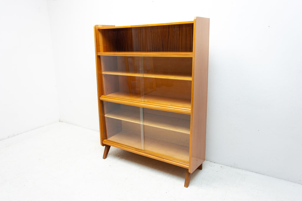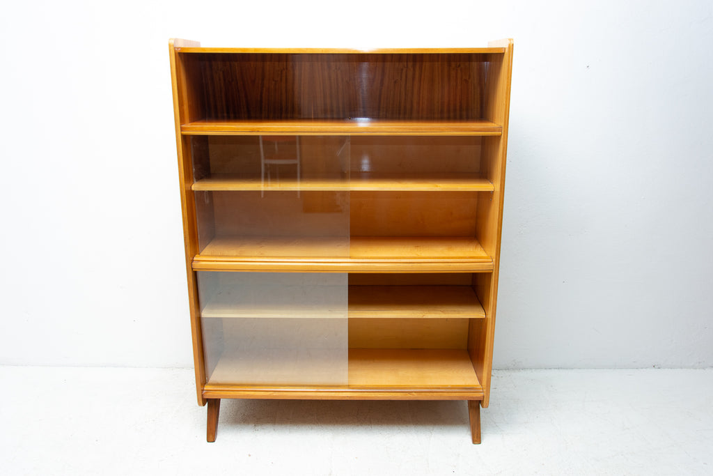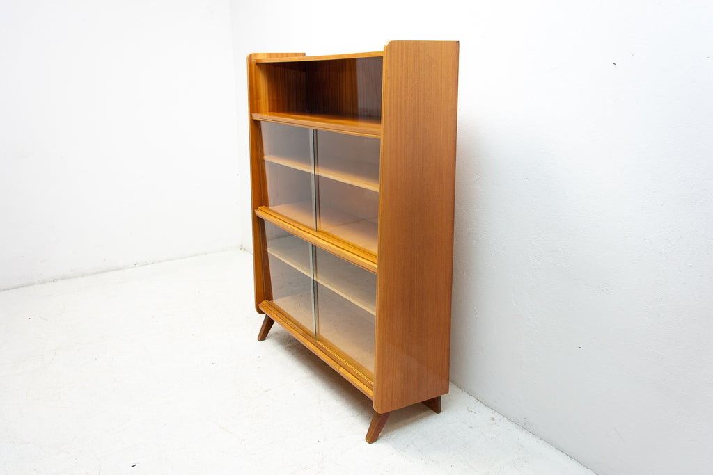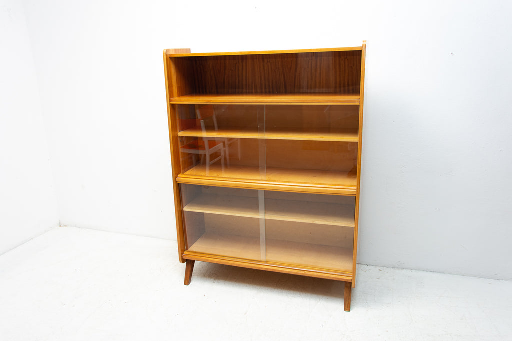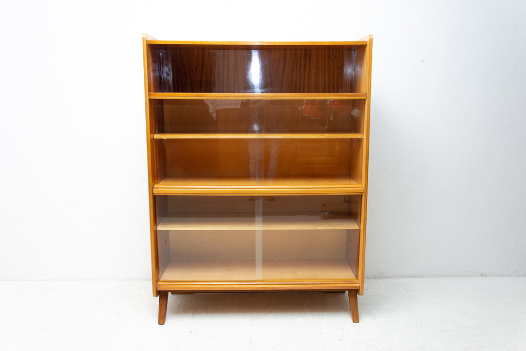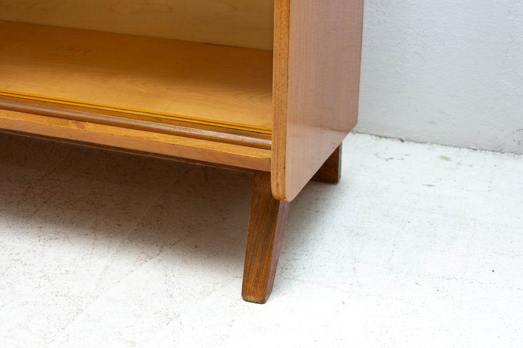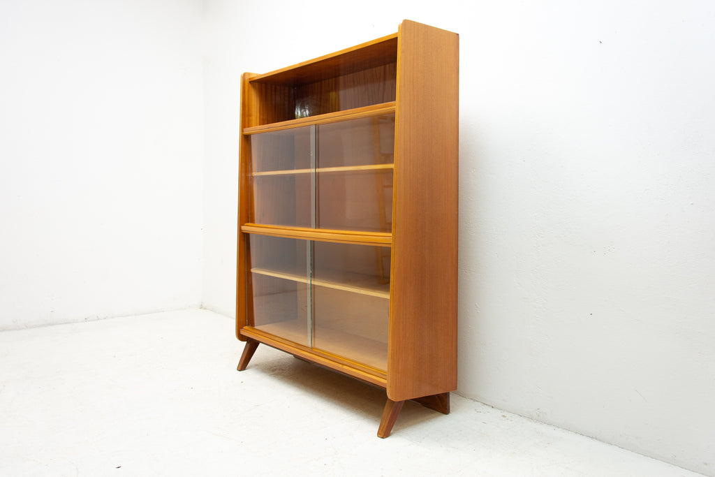 Mid century Vintage bookcase from the 1960´s. It was designed by Frantisek Jirák and was manufactured by Nový Domov company in the former Czechoslovakia. Features a simple design, a glazed section with five storage spaces. In good Vintage condition, showing signs of age and using.