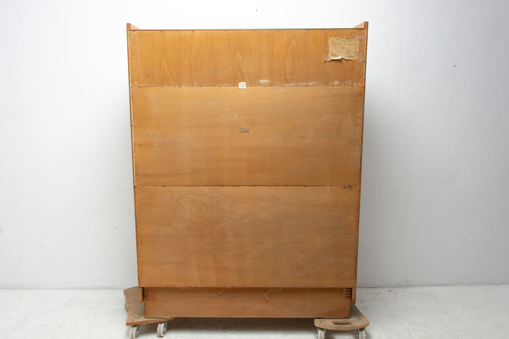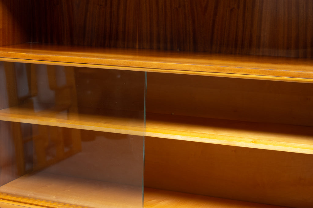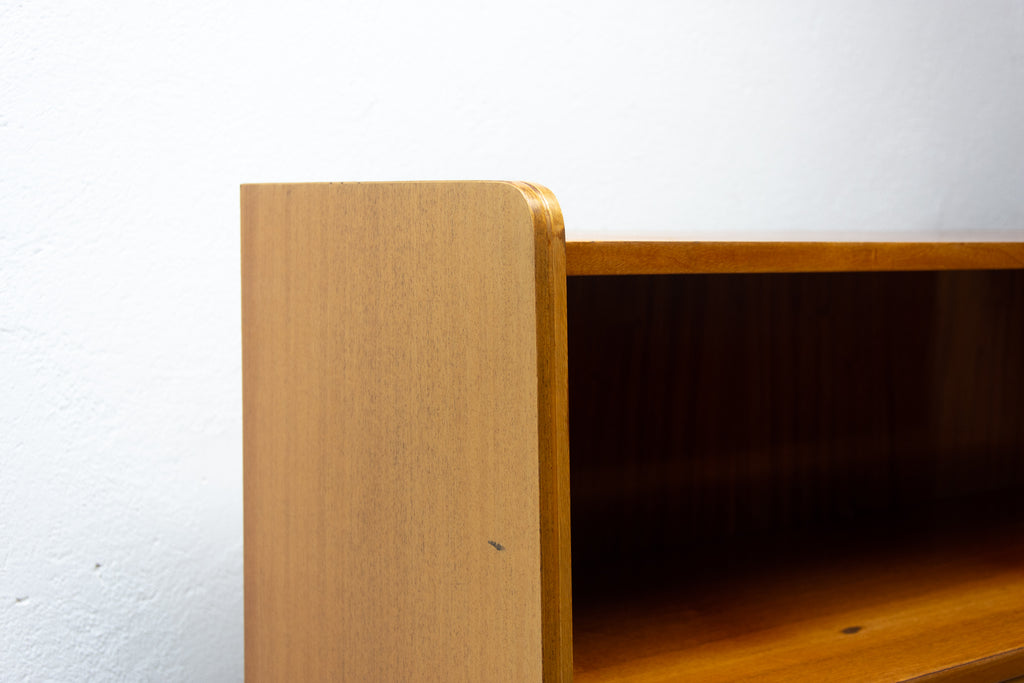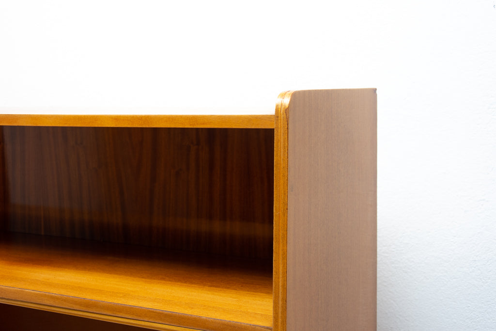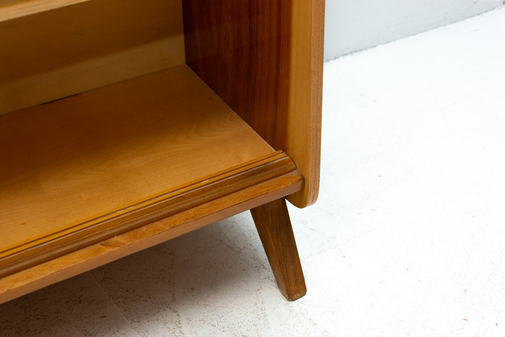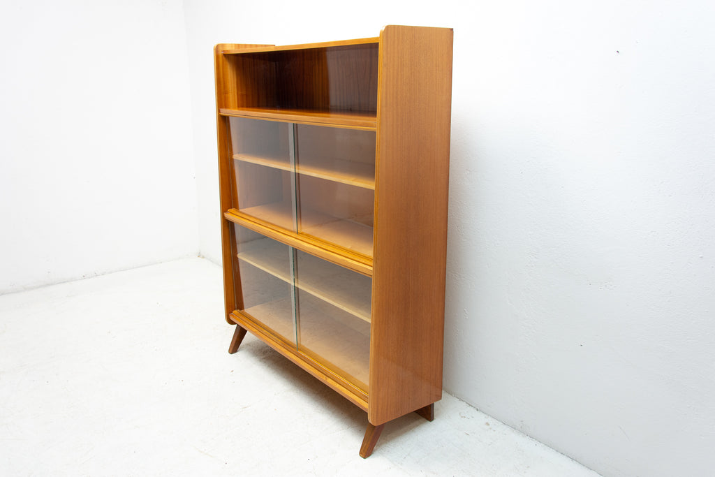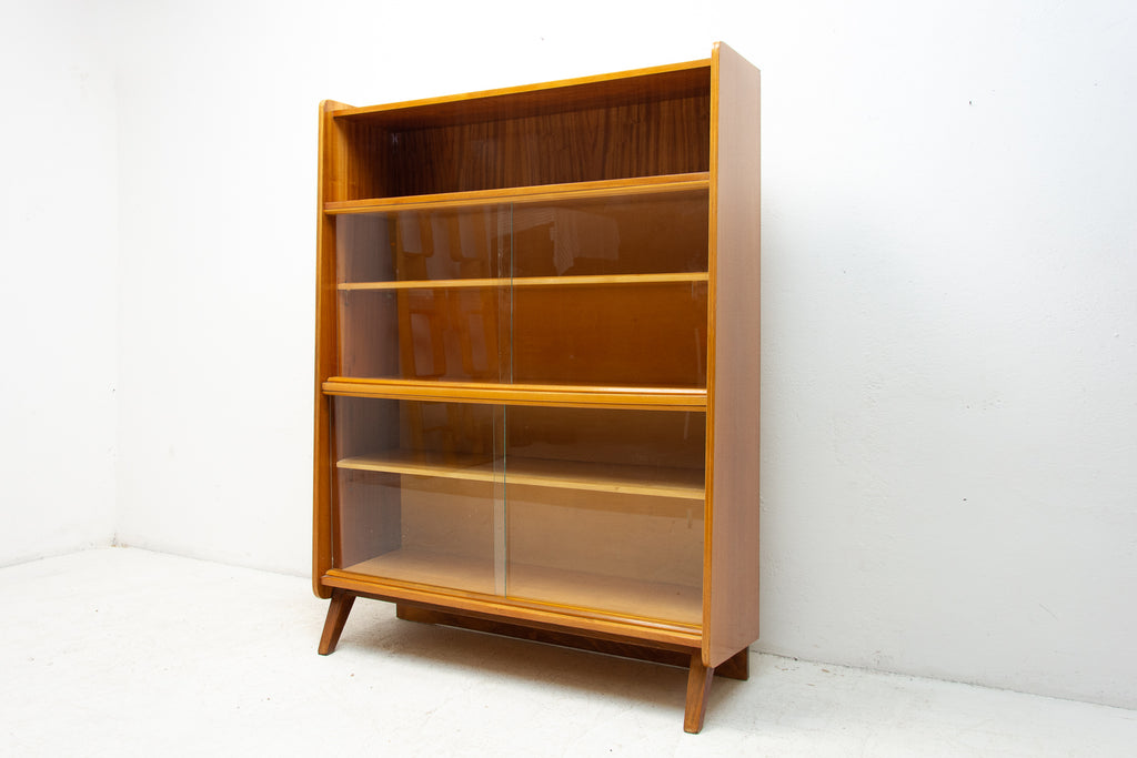Mid century Vintage bookcase from the 1960´s. It was designed by Frantisek Jirák and was manufactured by Nový Domov company in the former Czechoslovakia. Features a simple design, a glazed section with five storage spaces. In good Vintage condition, showing signs of age and using.