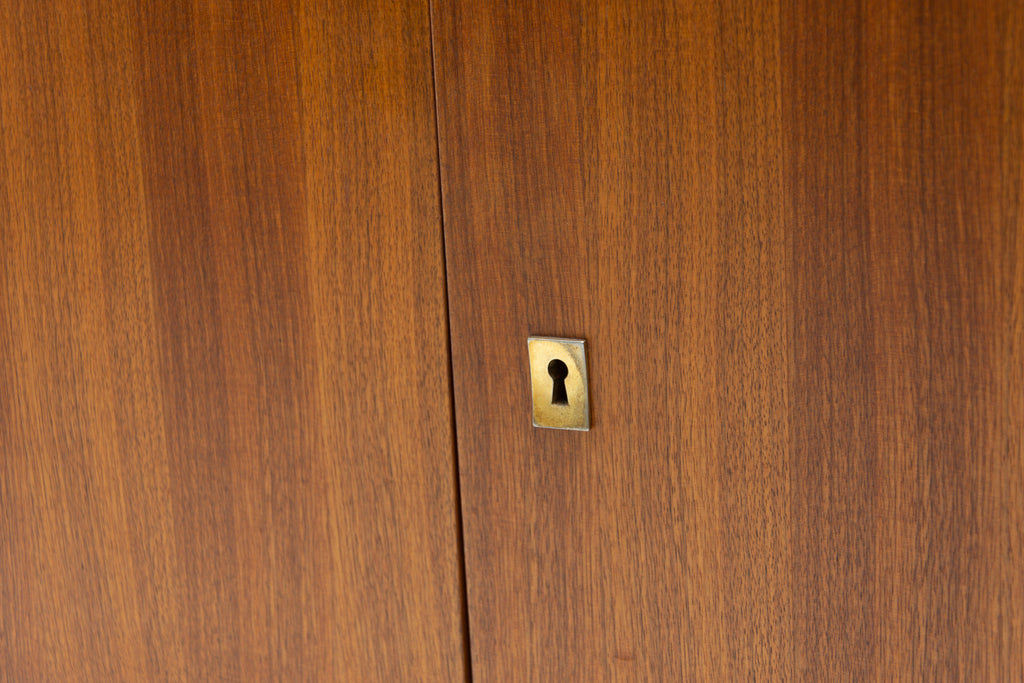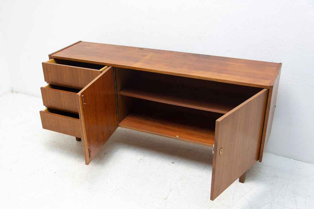 Vintage sideboard from Germany, it was made in the 1960´s. It´s made of wood with mahogany veneer. In good Vintage condition, shows signs of age and using.