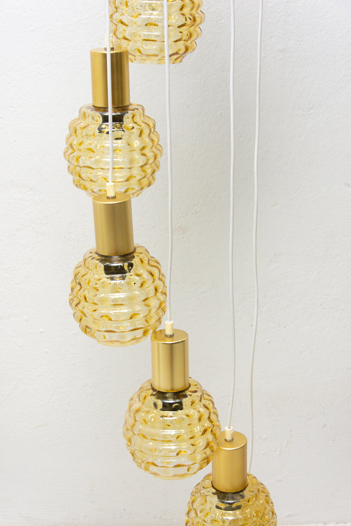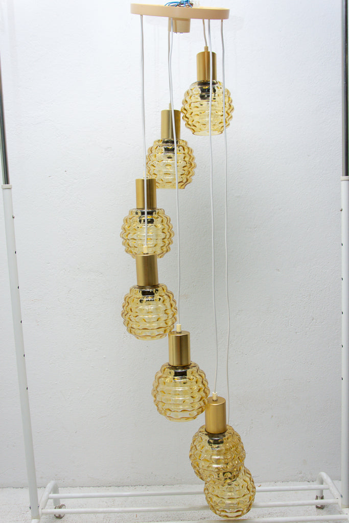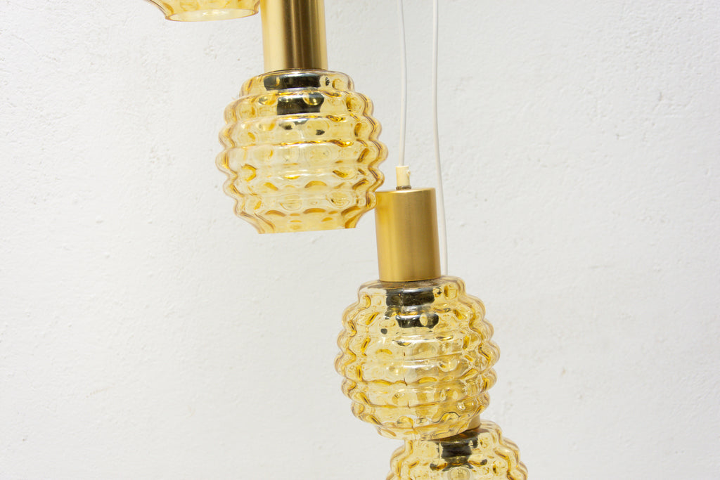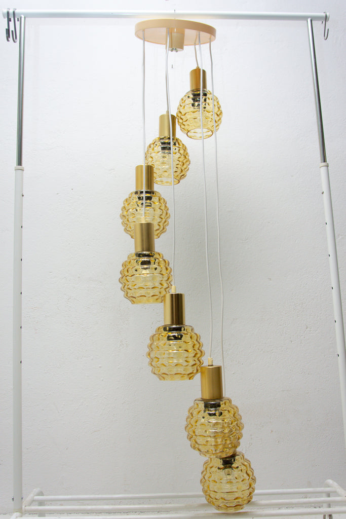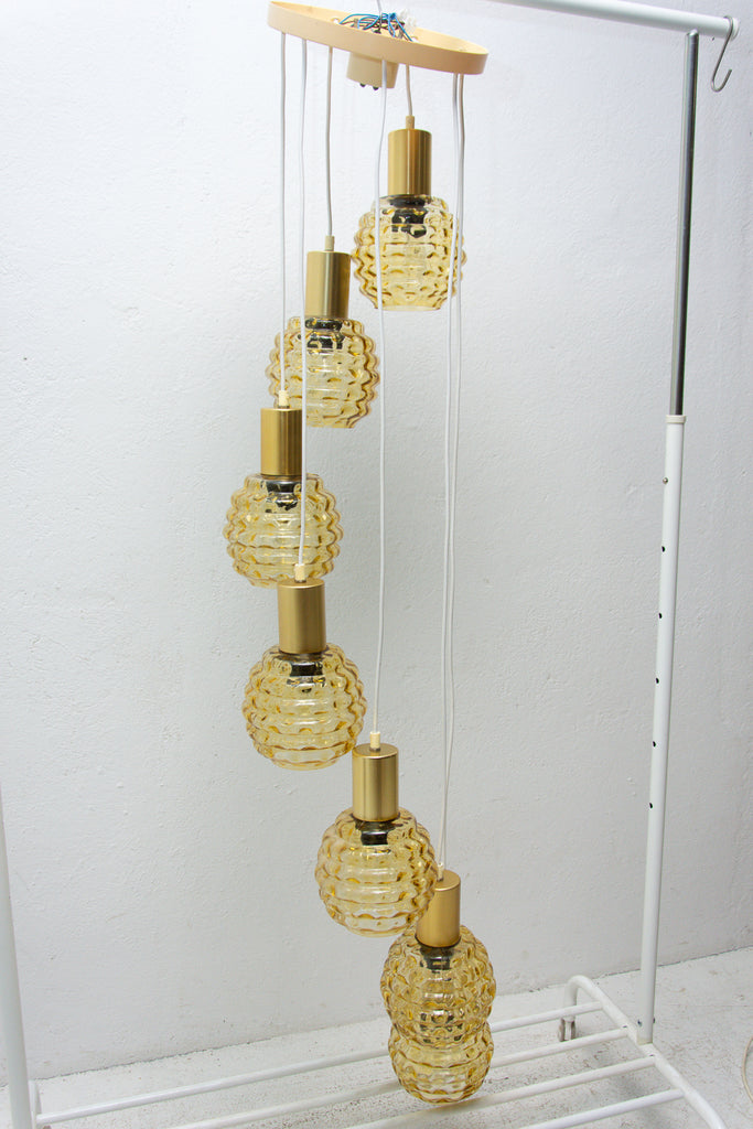Vintage hanging chandelier with seven glass lampshades, Pokrok ¦ilina, Czechoslovakia