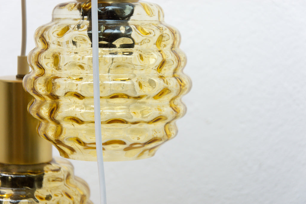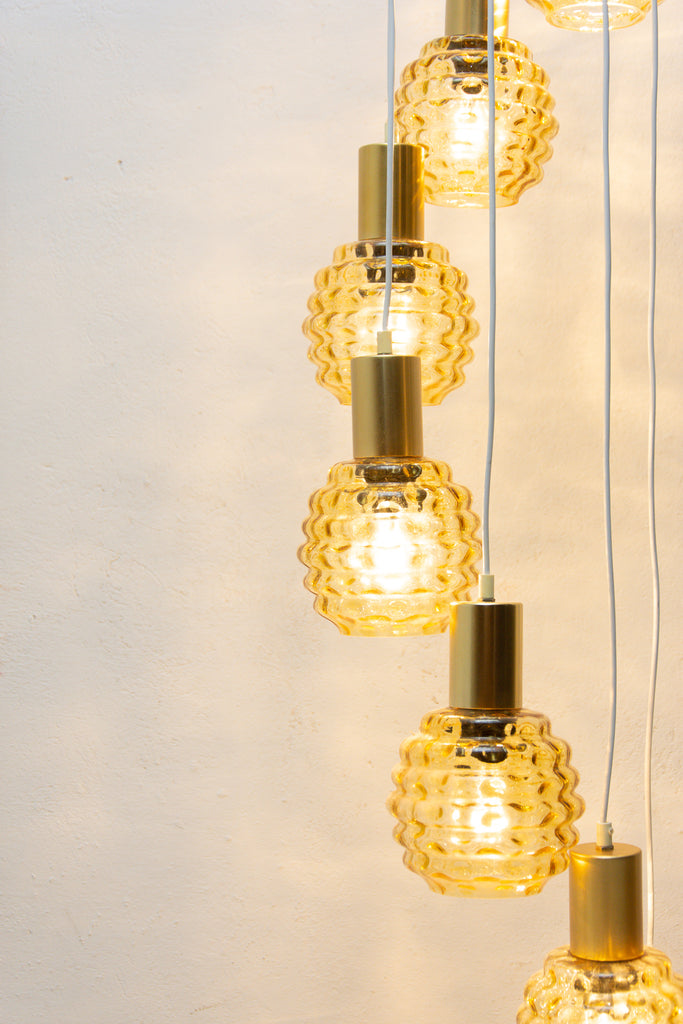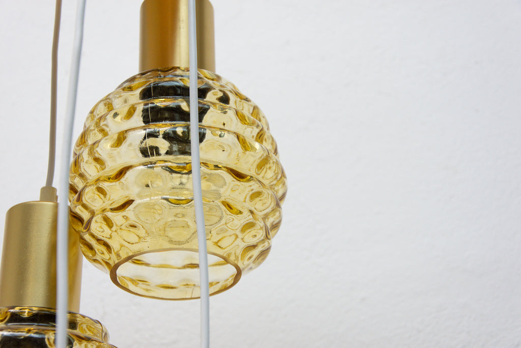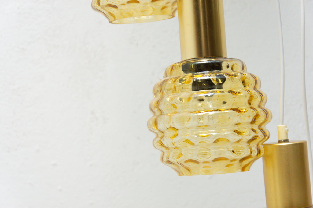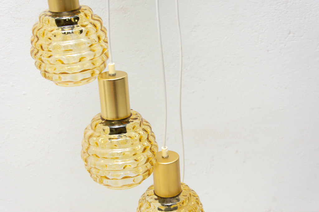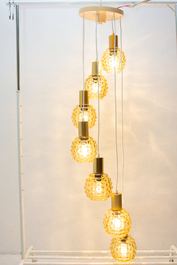 Vintage hanging chandelier with seven glass lampshades, Pokrok ¦ilina, Czechoslovakia