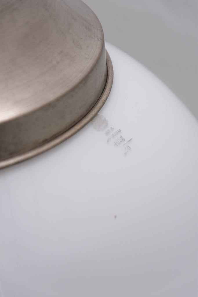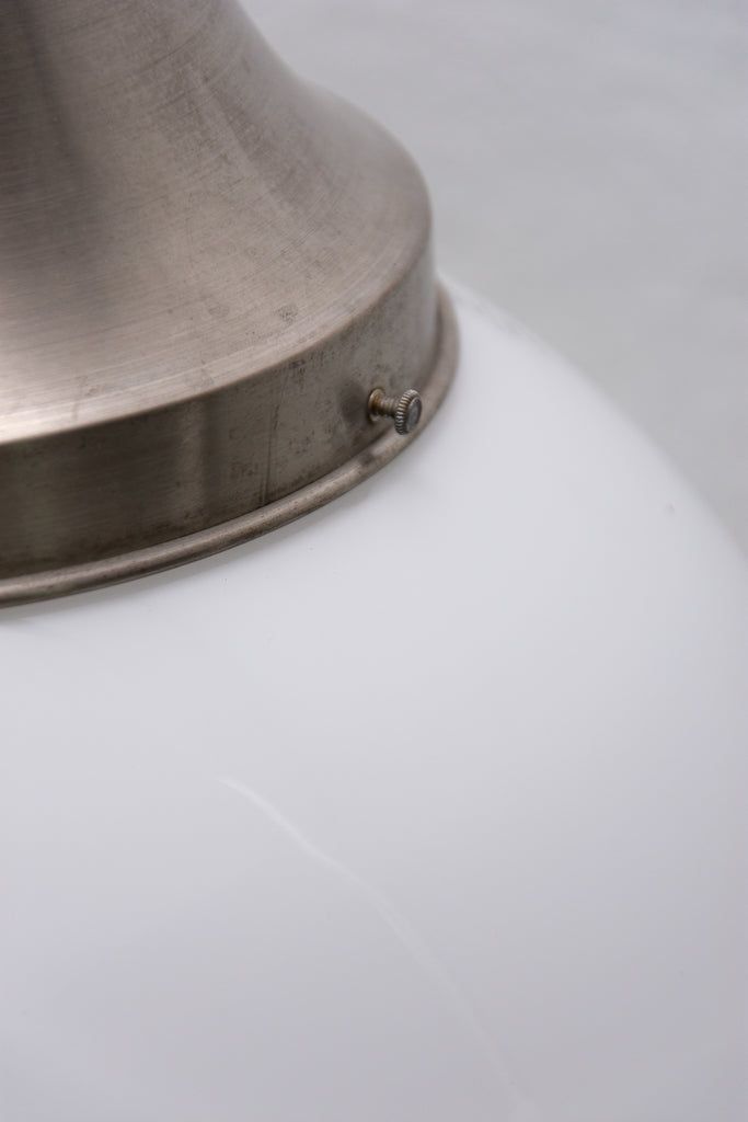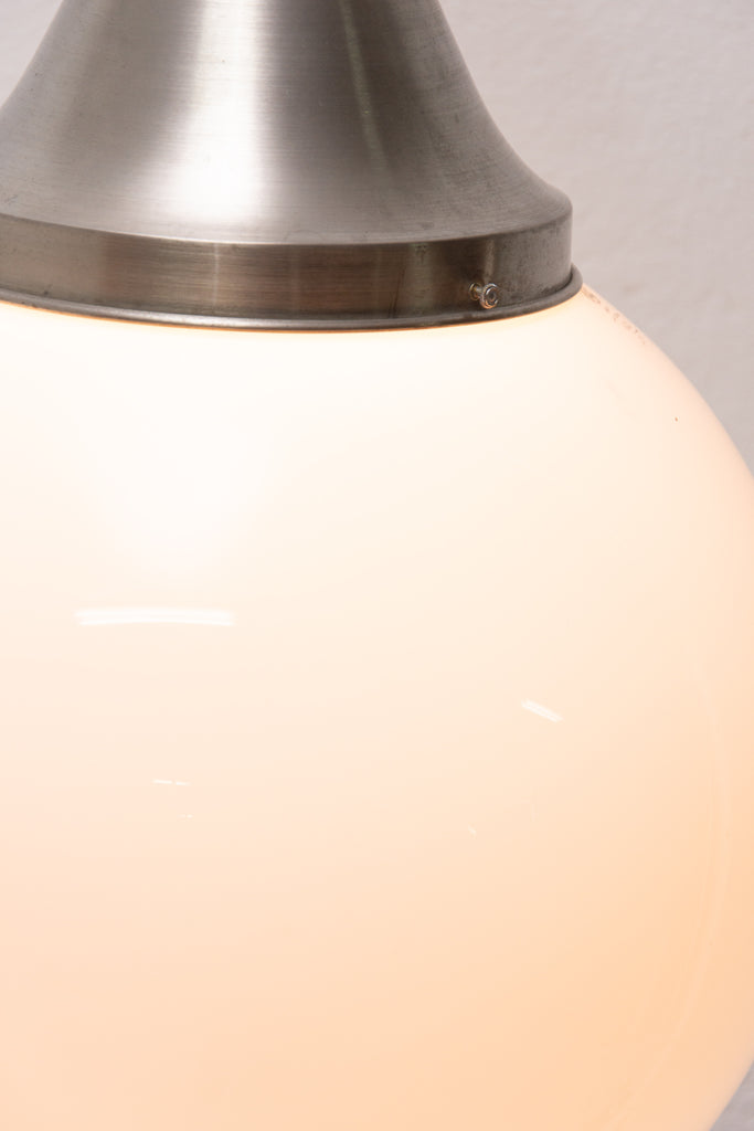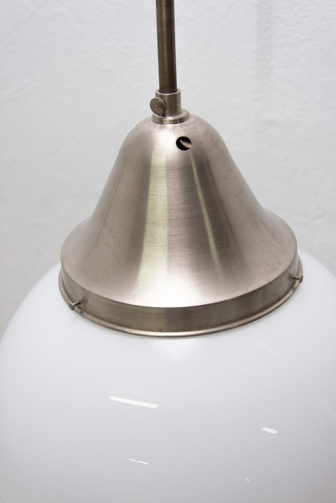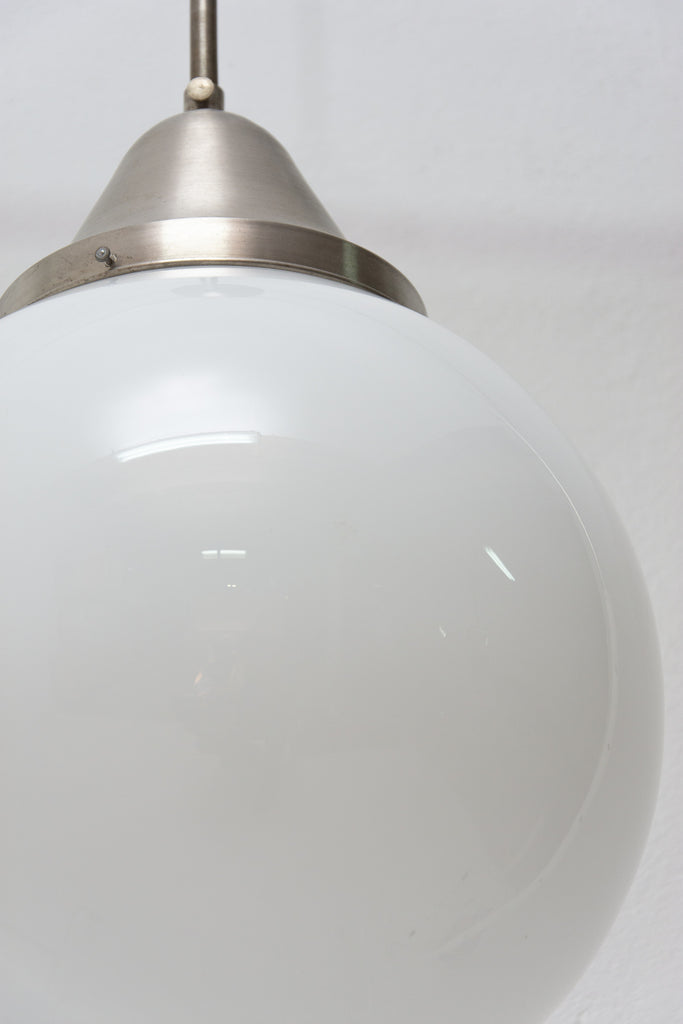 Bauhaus pendant lamp, made in the former Czechoslovakia in the 1930´s. Round opaque glass with a chrome-plated rod. In very good condition. New wiring.