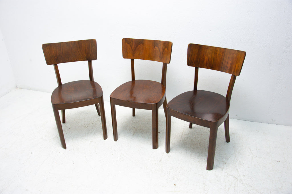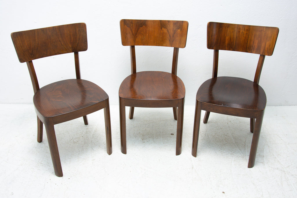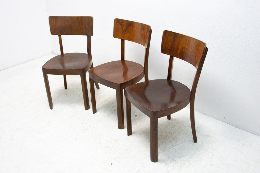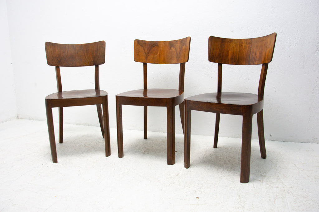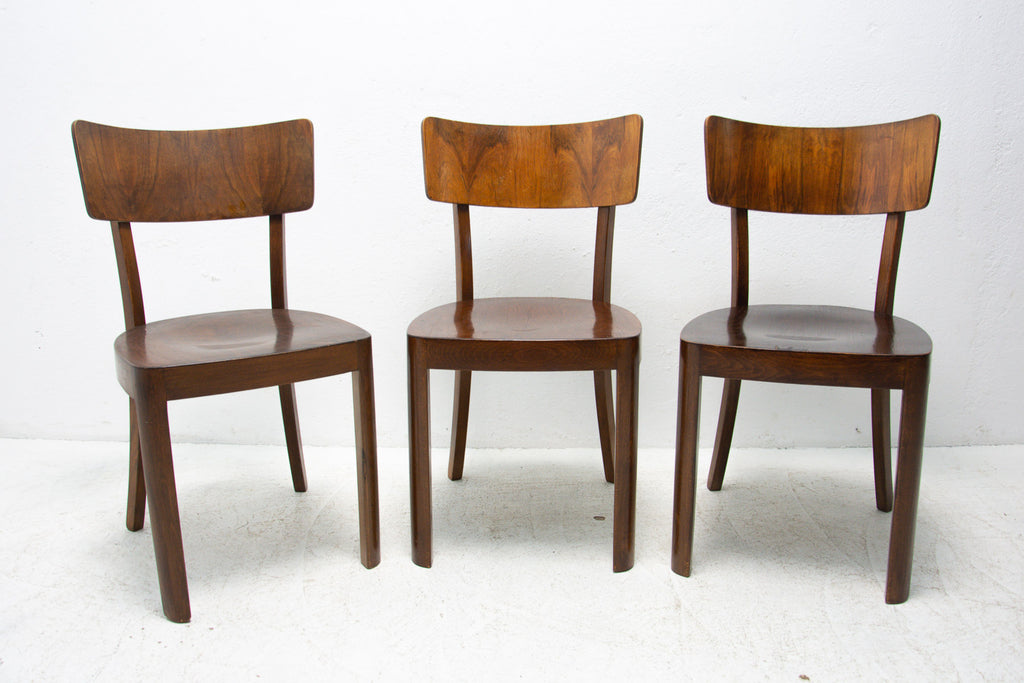 Dining walnut chairs by TON, Czechoslovakia, 1950s, set of 3