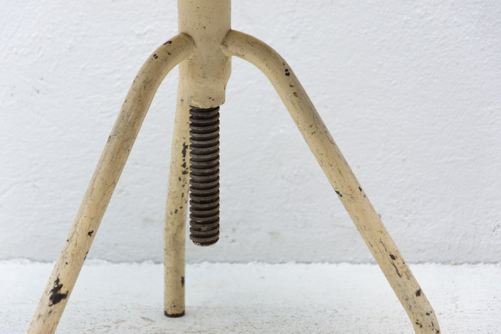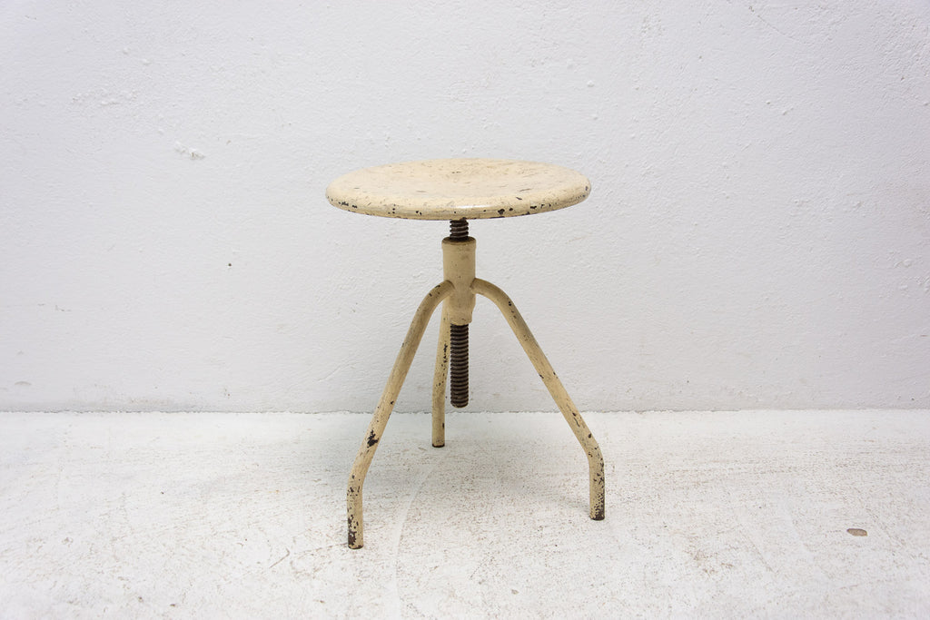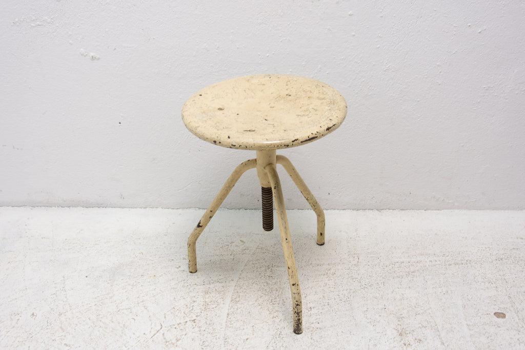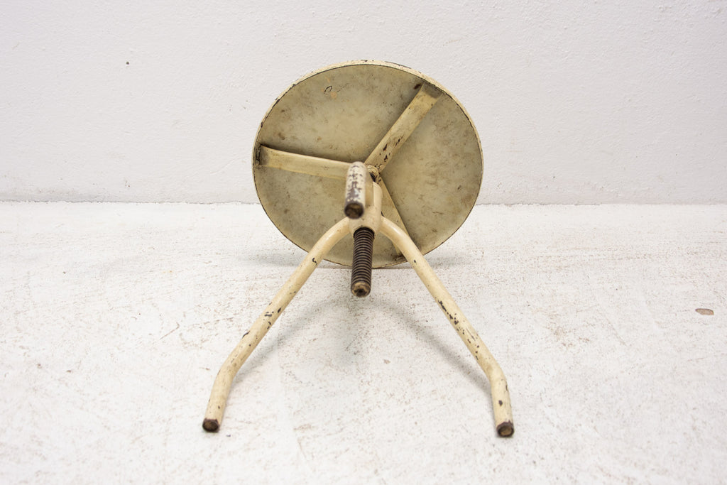 Industrial workers iron swivel stool , made in the former Czechoslovakia in the 1950´s. In good Vintage condition with nice patina, showing signs of age and using.