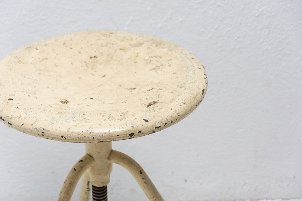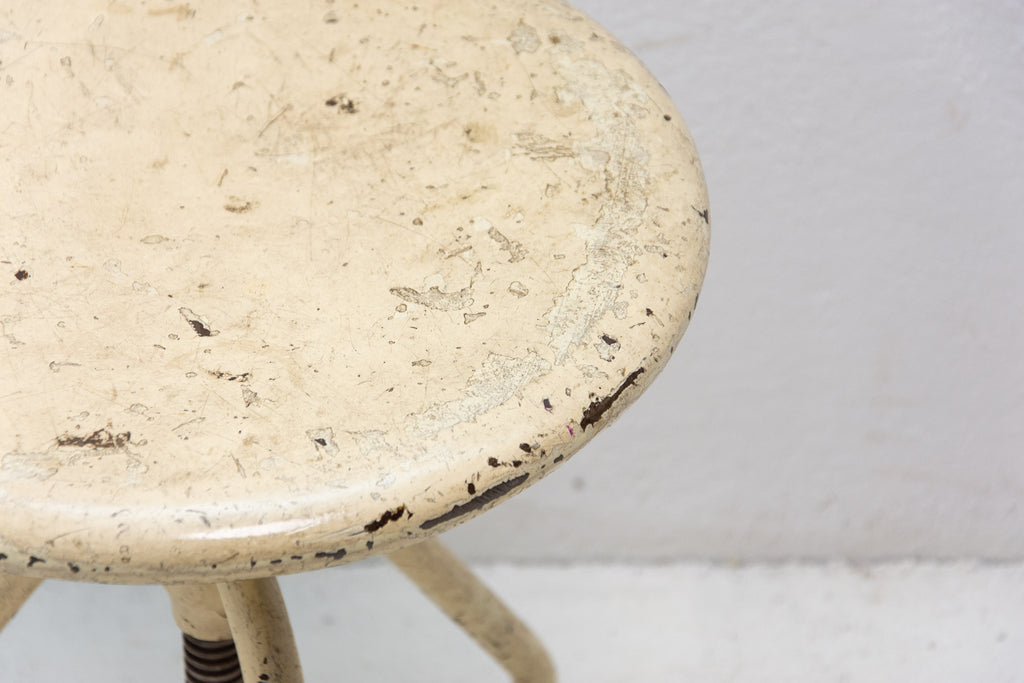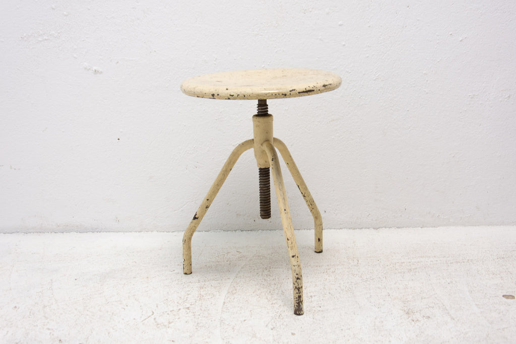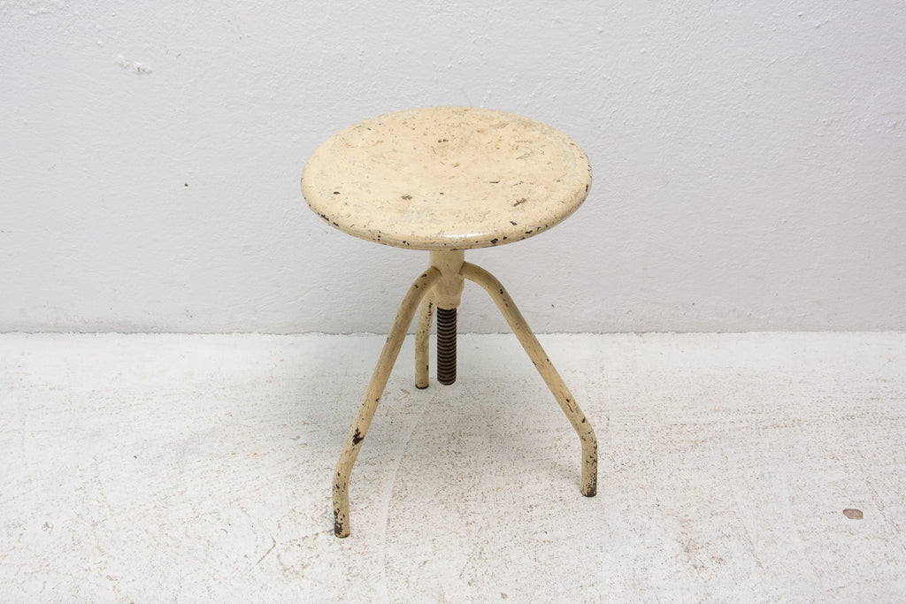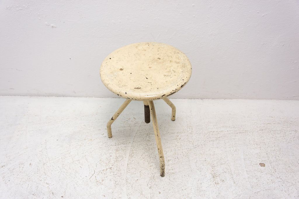 Industrial workers iron swivel stool , made in the former Czechoslovakia in the 1950´s. In good Vintage condition with nice patina, showing signs of age and using.