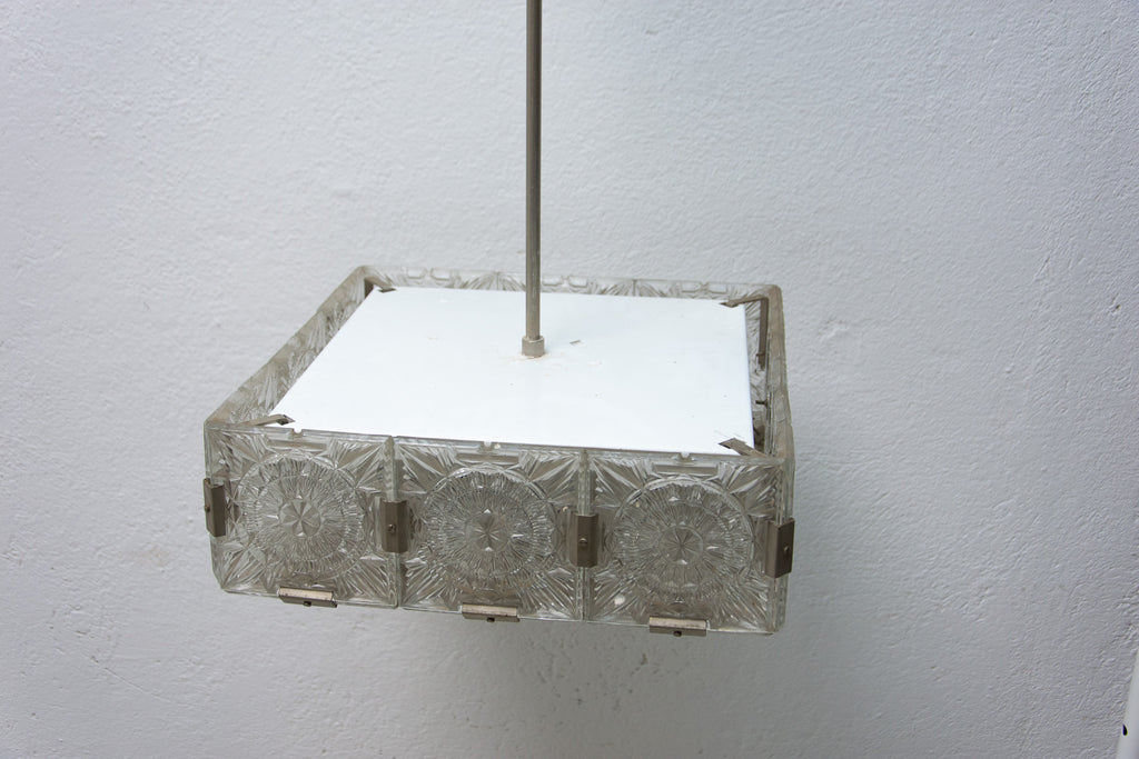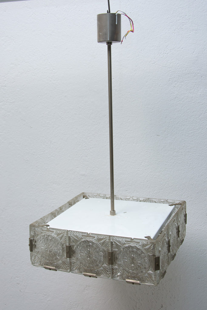 Vintage Glass and Chromed Steel Pendant Lamp by Kamenickě ćenov, 1970s