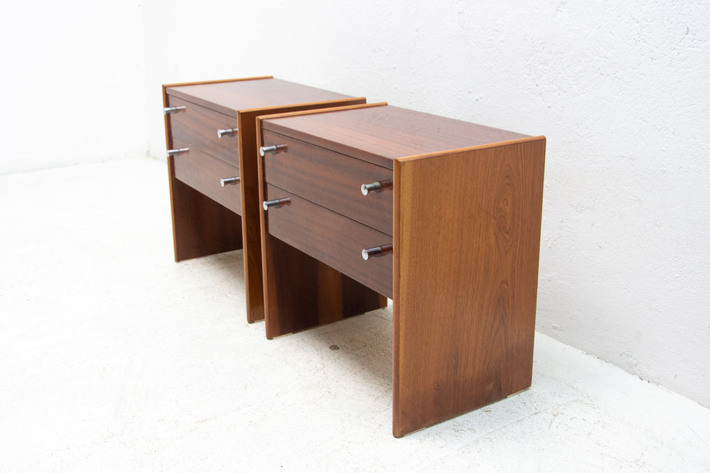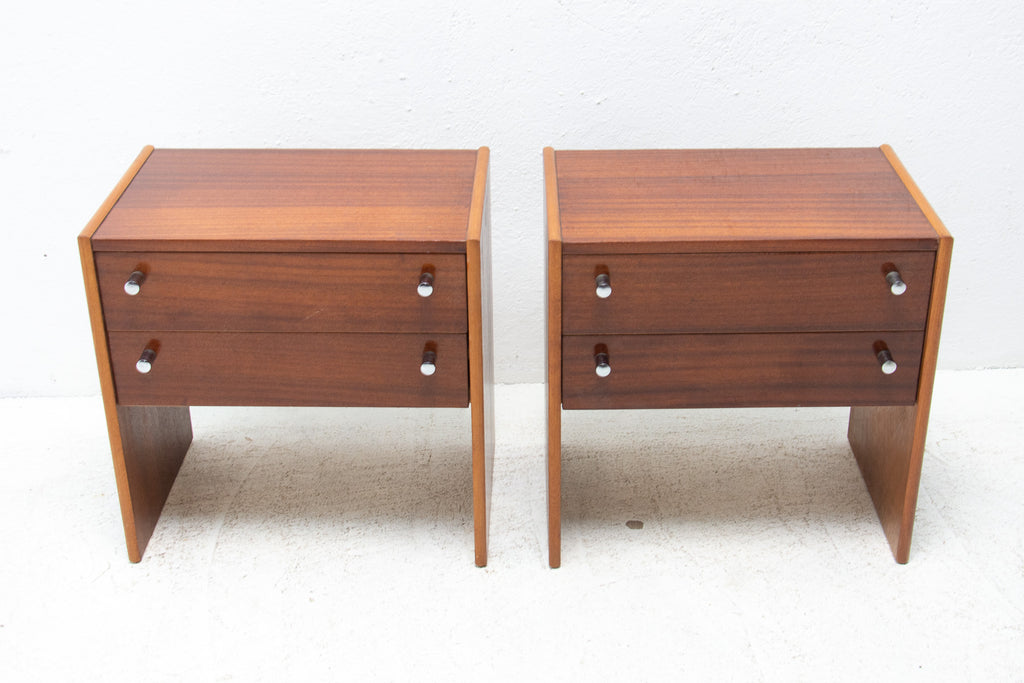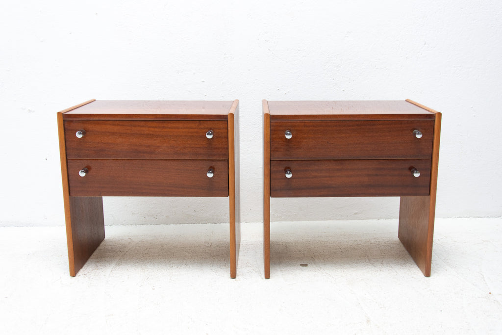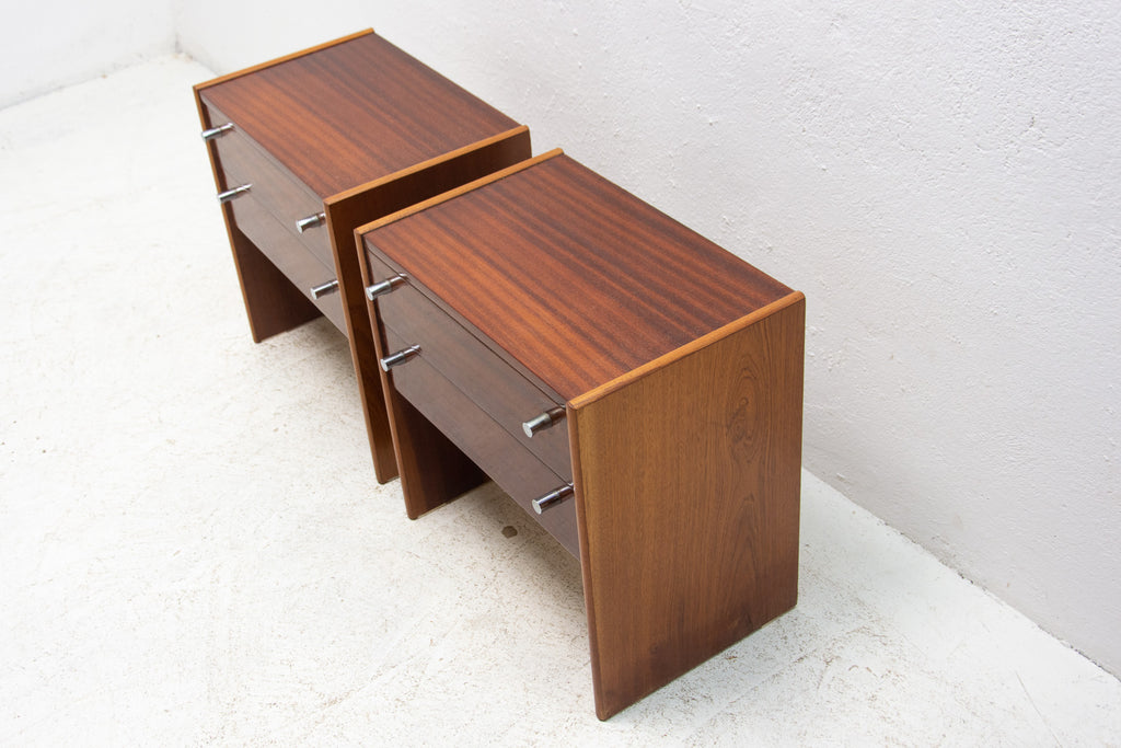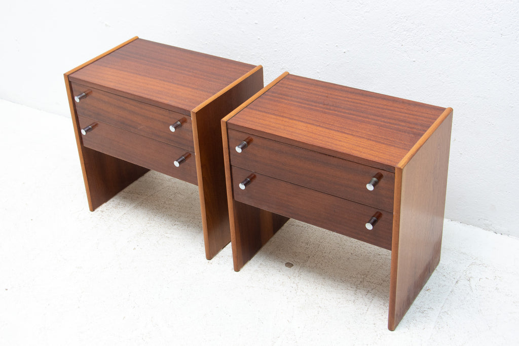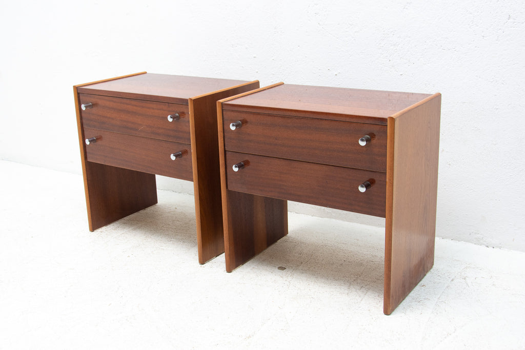 Pair of Vintage mahogany bedside tables, UP Zavody, Czechoslovakia, 1980s