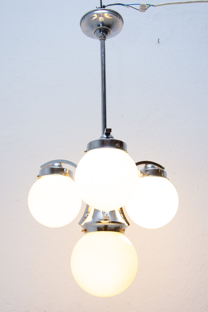 Art Deco three-armed chandelier, 1930s, Bohemia