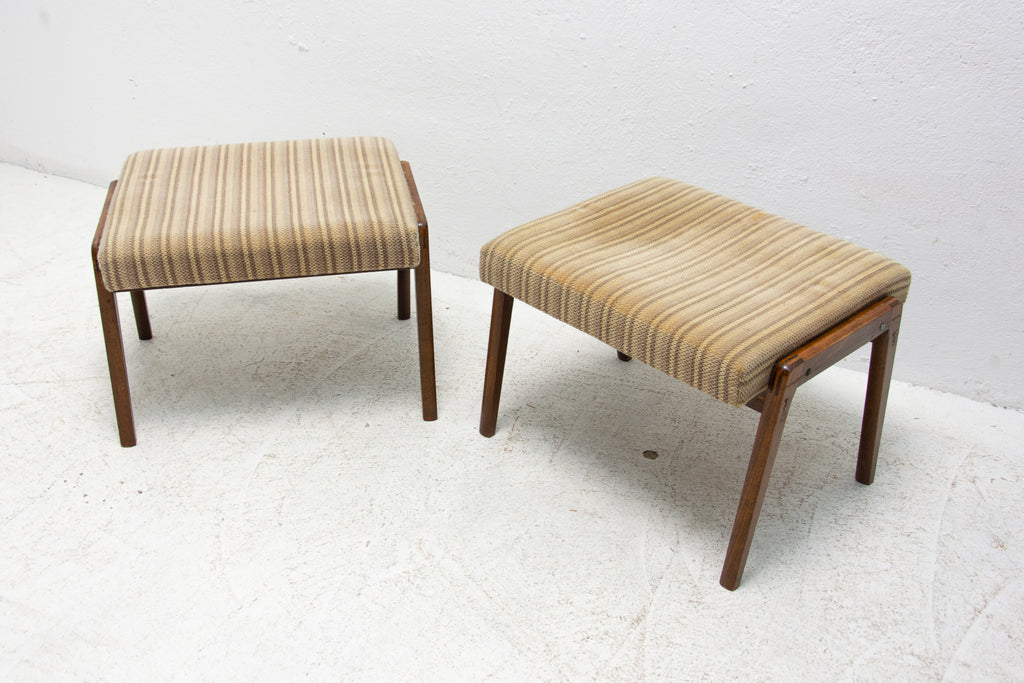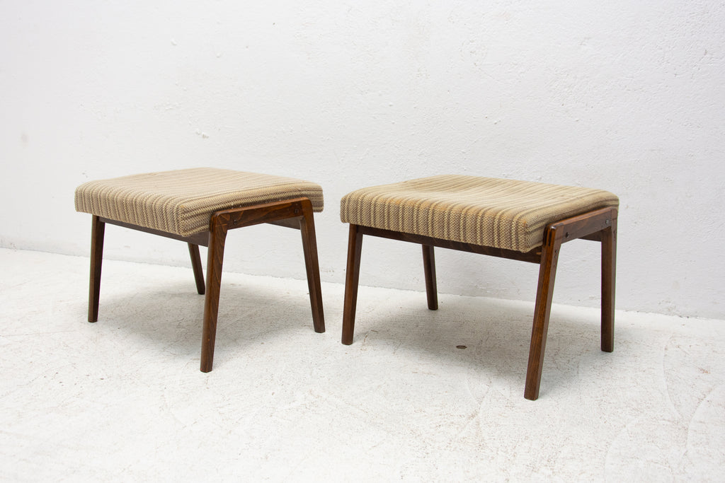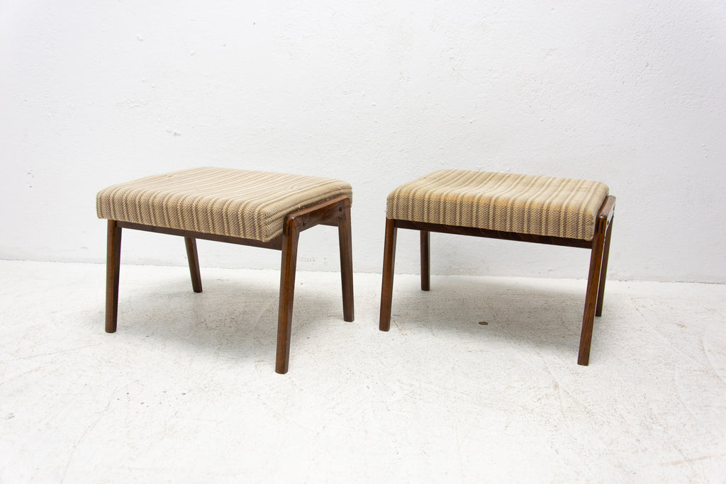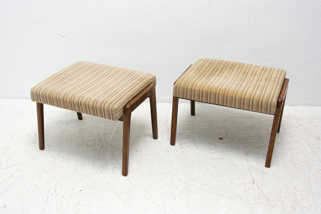 These stools were made in the former Czechoslovakia in the 1960´s. Features an upholstered seats and structure is made of beech wood. In good preserved original condition, showing signs of age and using.