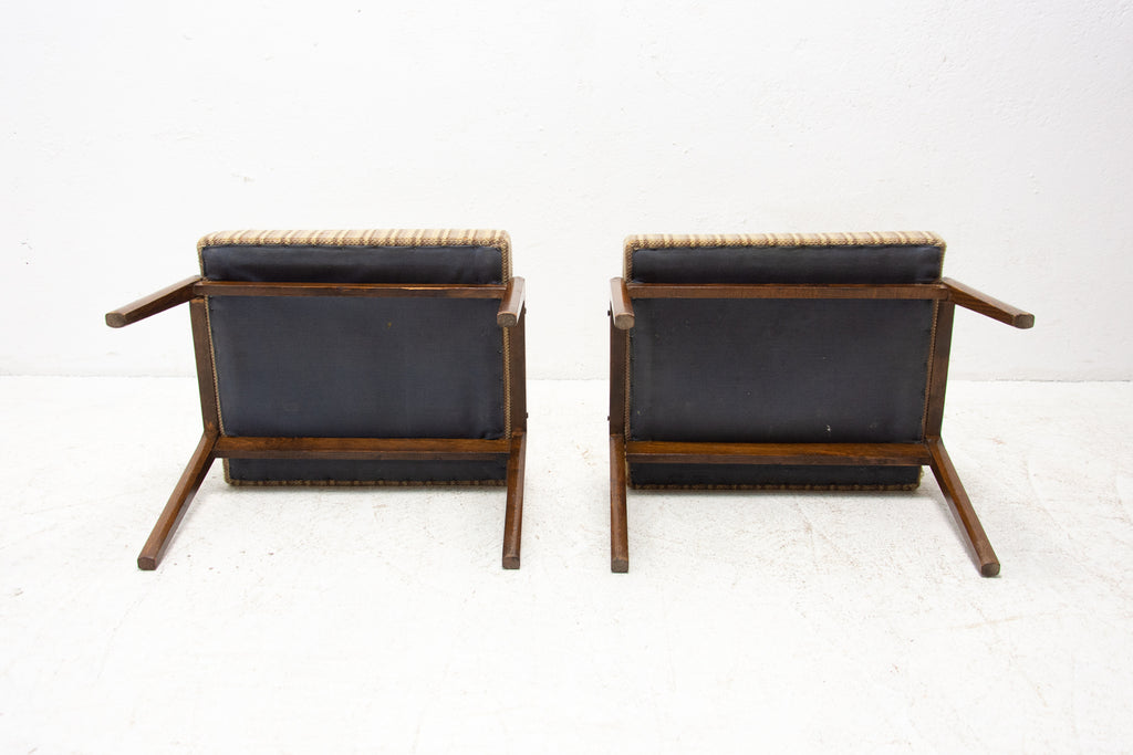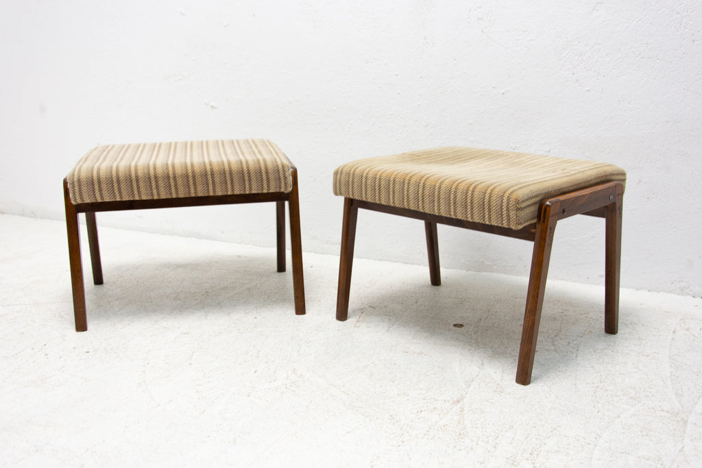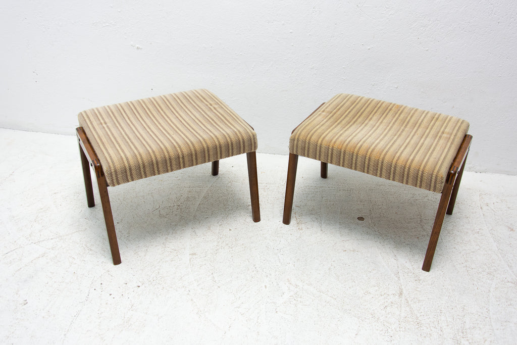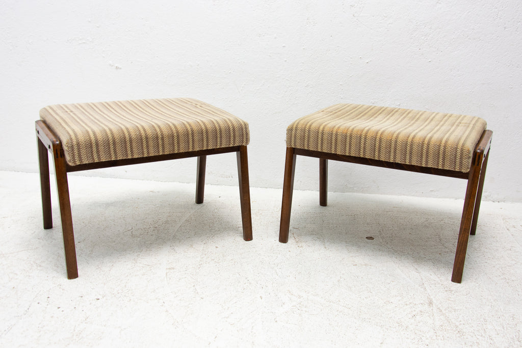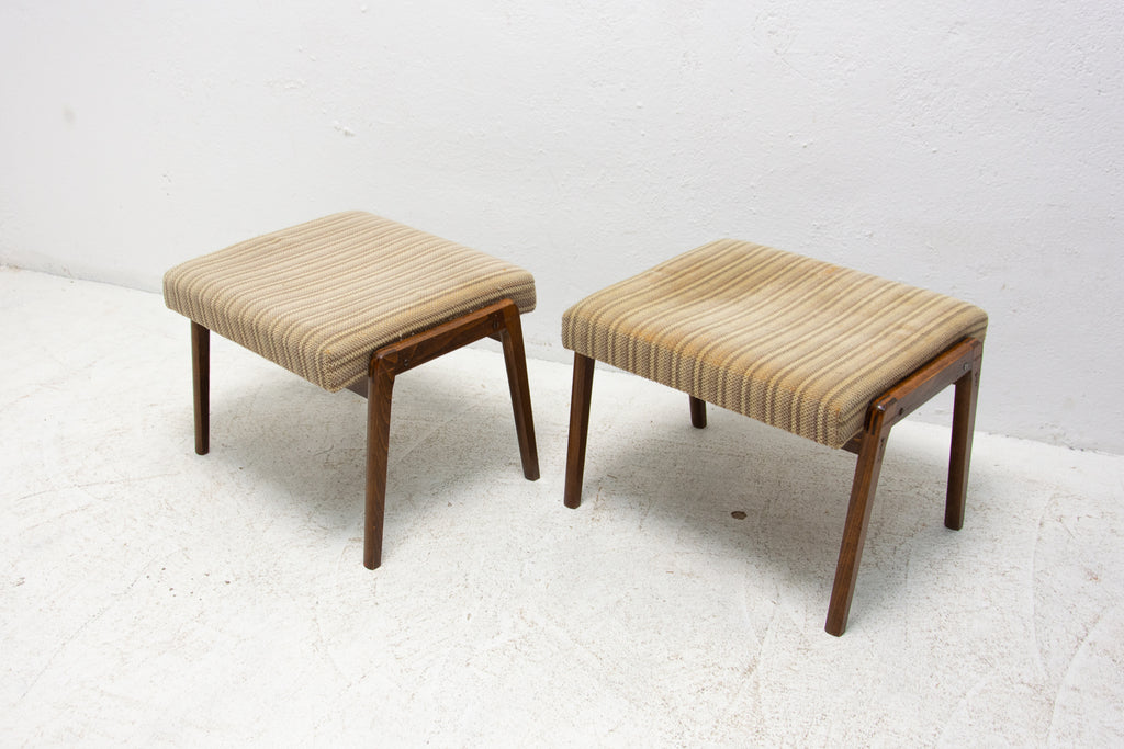 These stools were made in the former Czechoslovakia in the 1960´s. Features an upholstered seats and structure is made of beech wood. In good preserved original condition, showing signs of age and using.