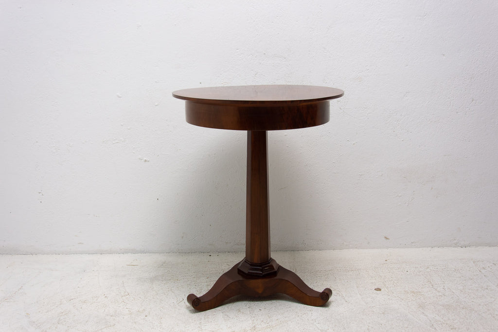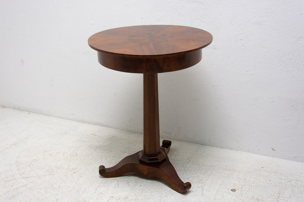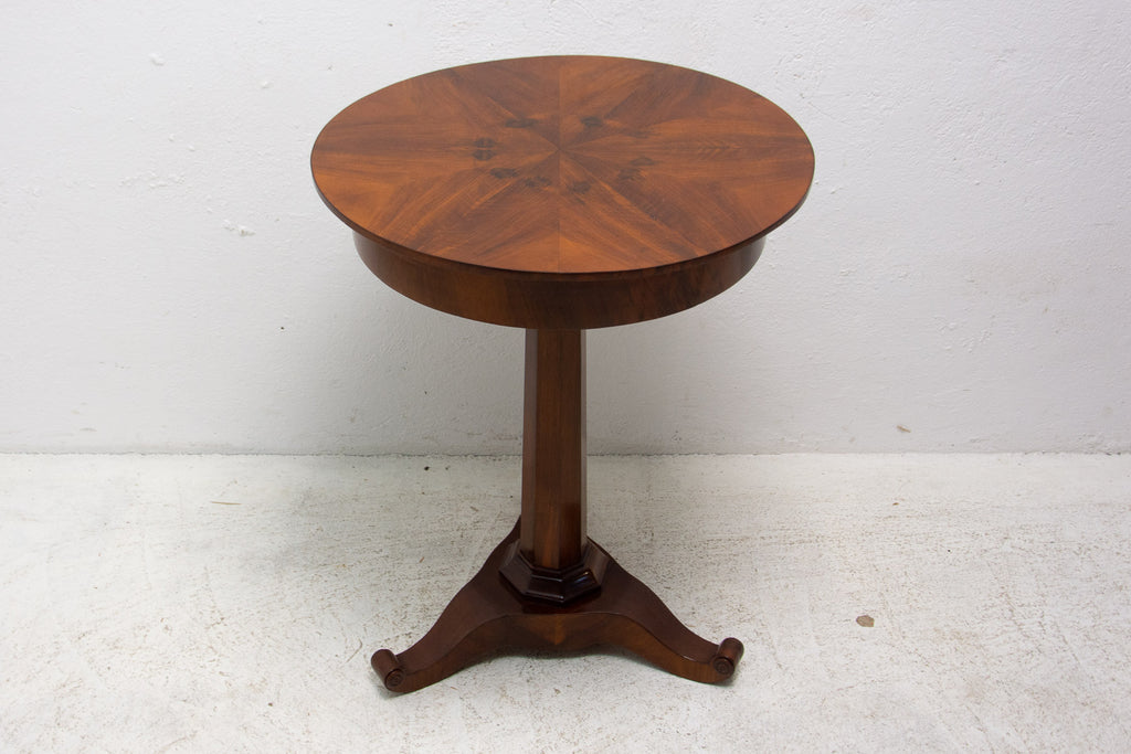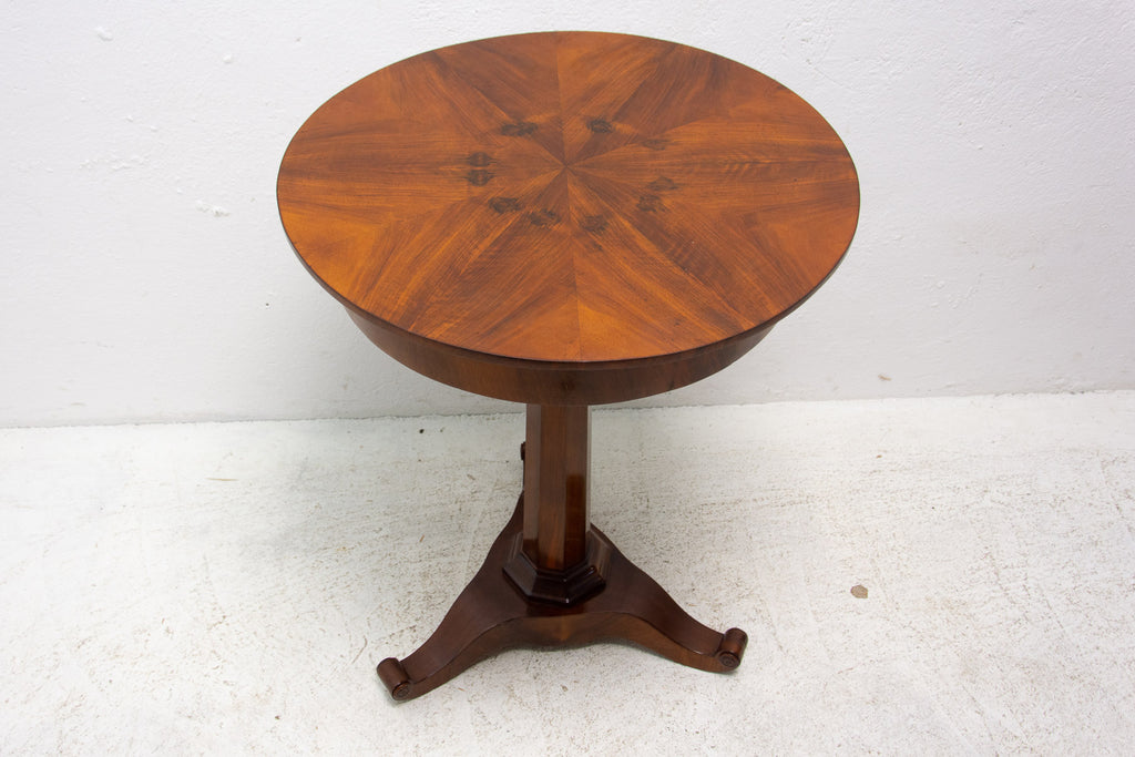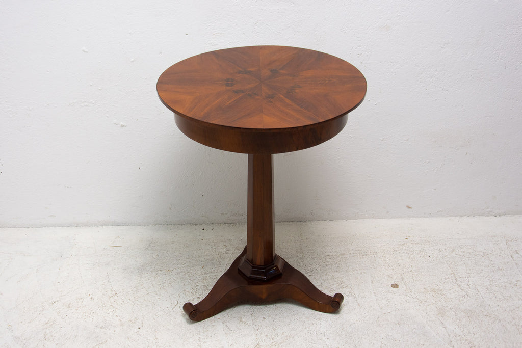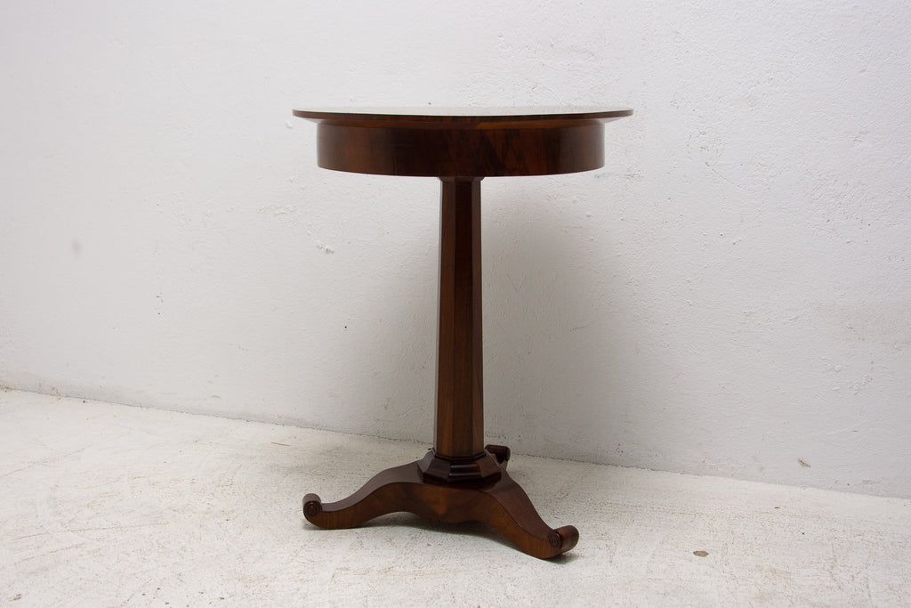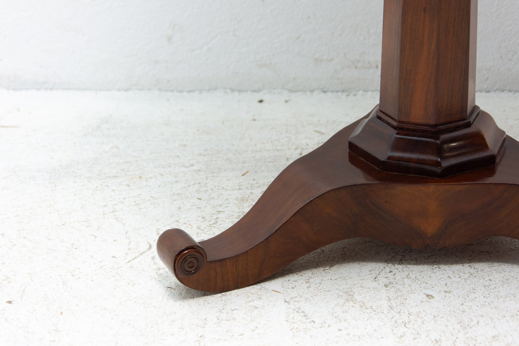 An antique, very elegant table from the Biedermeier period. Made around 1830 in the territory of the former Austria-Hungary Empire. Made of walnut wood. In excellent condition, completely restored.