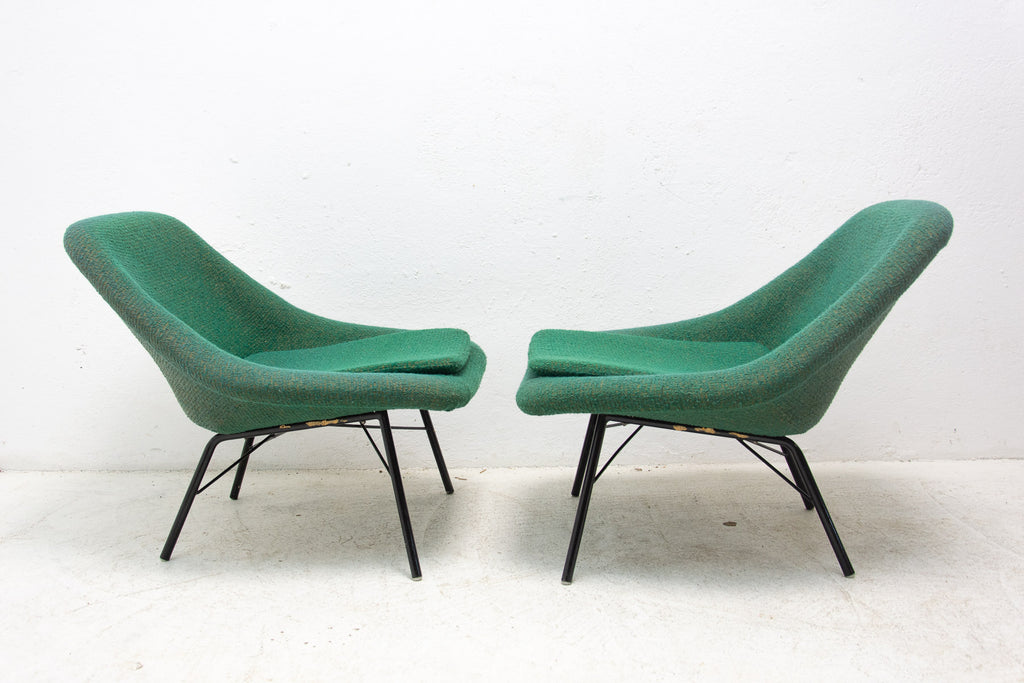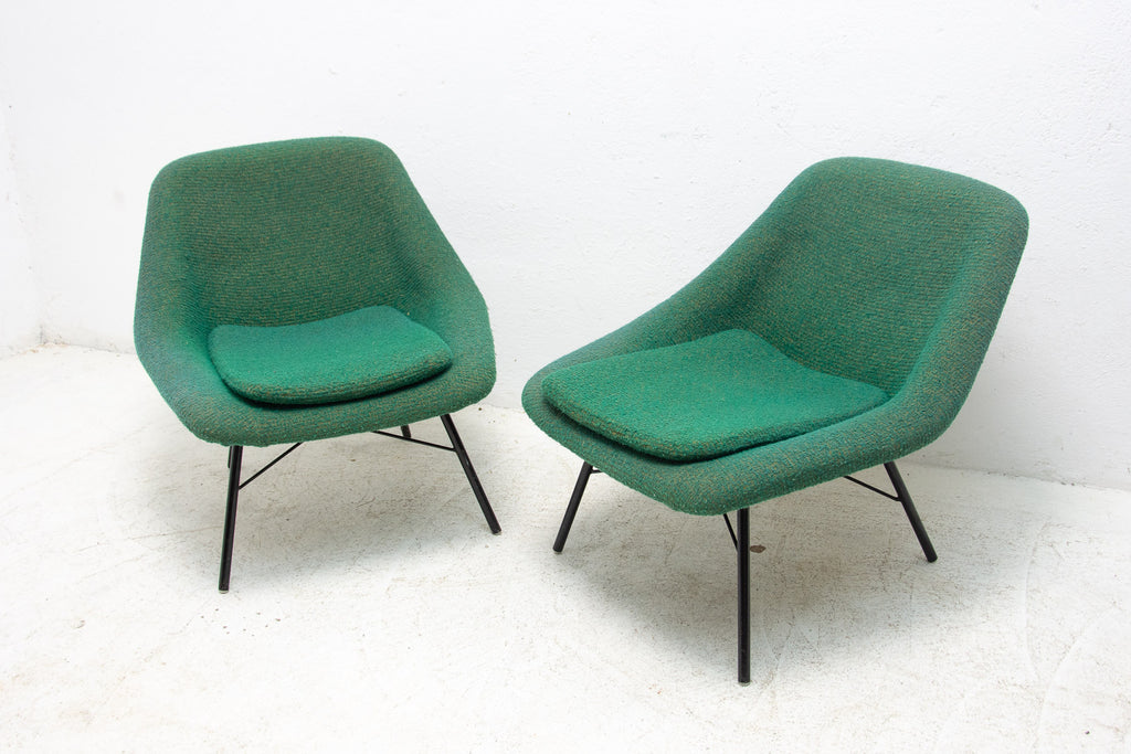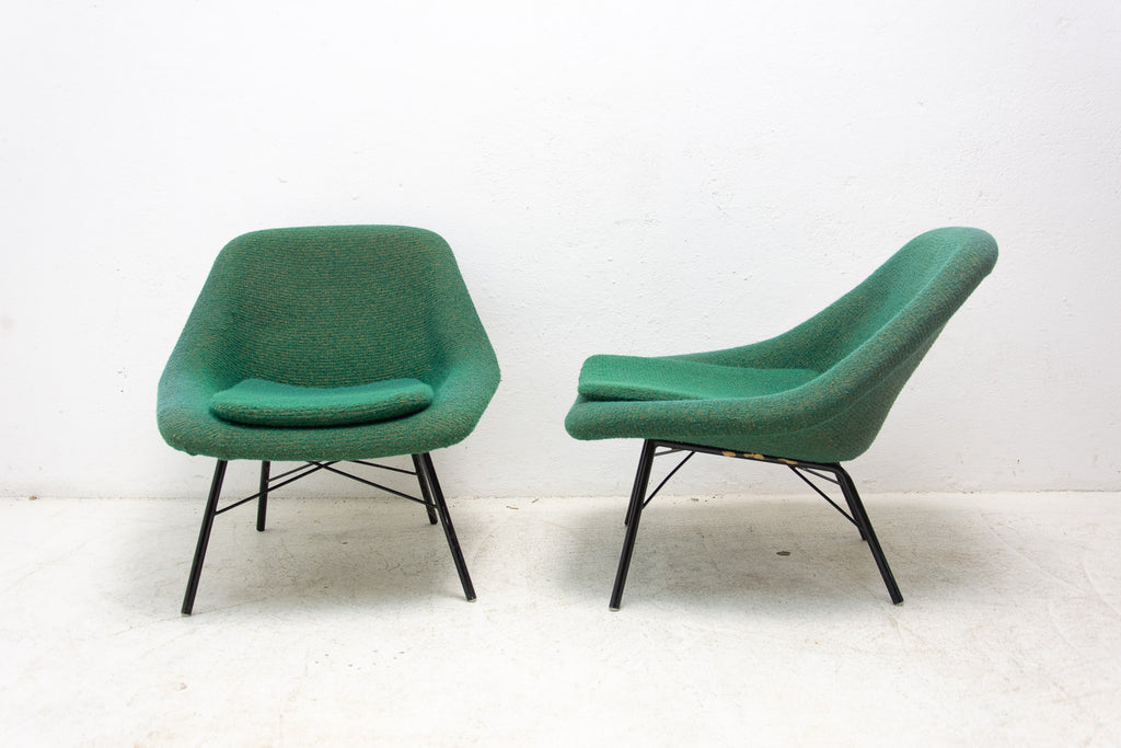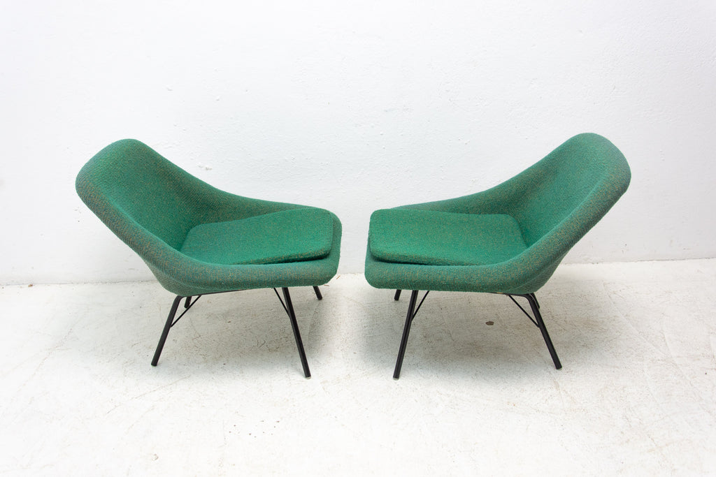 A very comfortable lounge midcentury chairs designed by the Czech famous Czechoslovak designer Magda Sépová. These chairs were designed in the context of the world-renowned exhibition EXPO in Brussels in 1958, where the Czechoslovak pavilon had a phenomenal success.