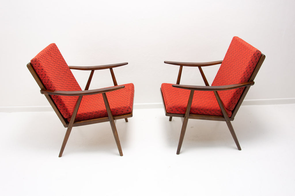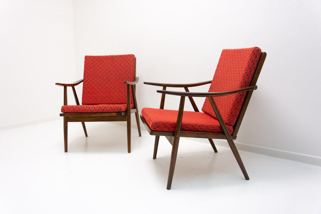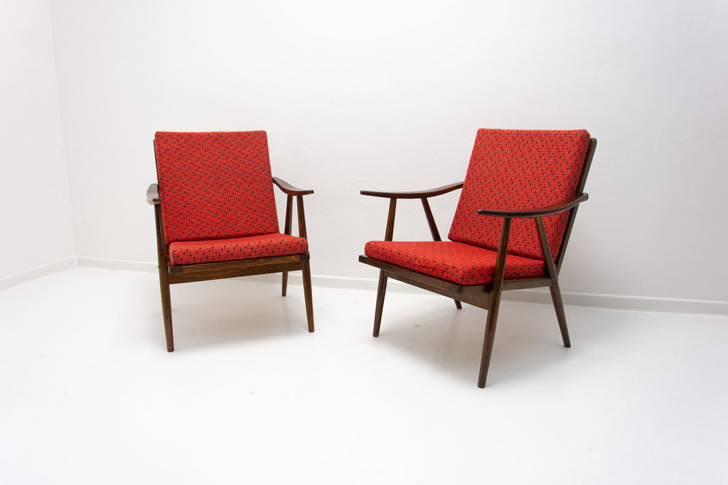 These midcentury armchairs were designed by Jaroslav smídek for TON company and made in the former Czechoslovakia in the 1970´s. They are made of beechwood.
