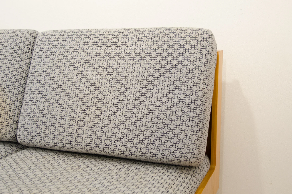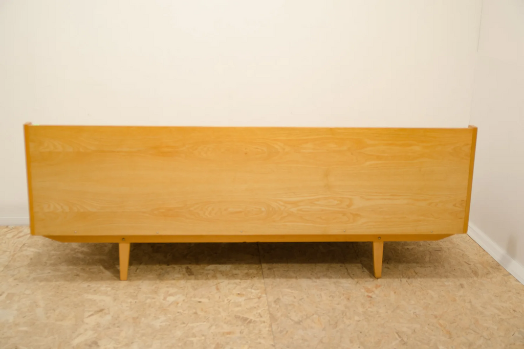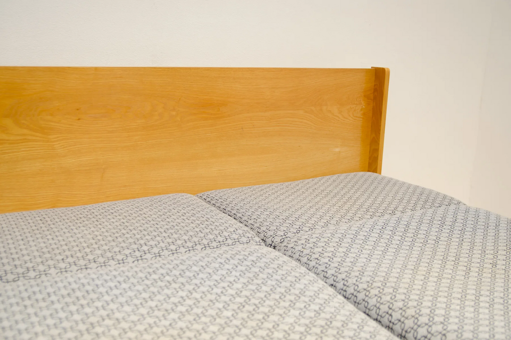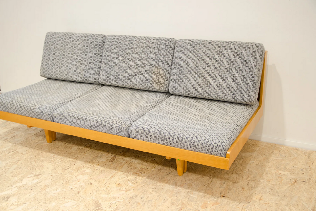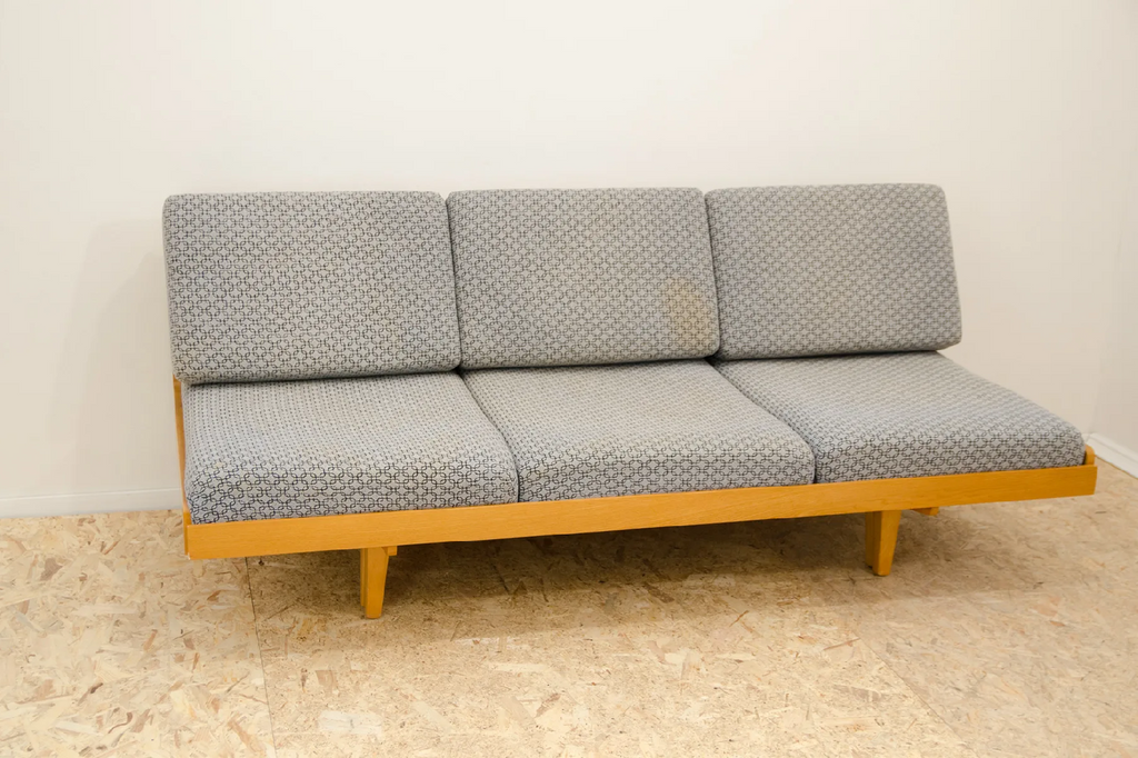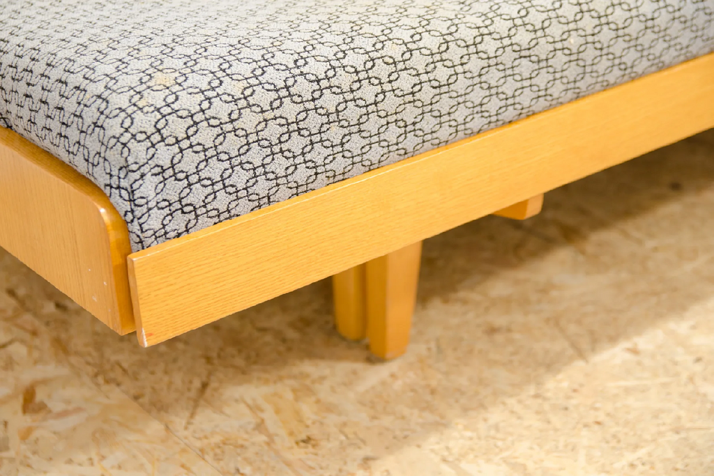 Sofa bed from the middle of the century, made in the former Czechoslovakia. The sofa is in very good condition, the fabric has minor stains in a few places, reupholstery, that we can provide, would be suitable. Material: beech wood, fabric.