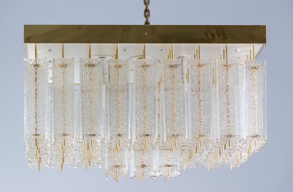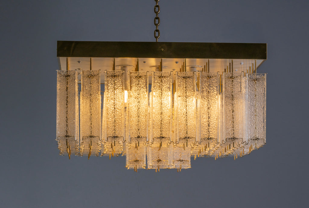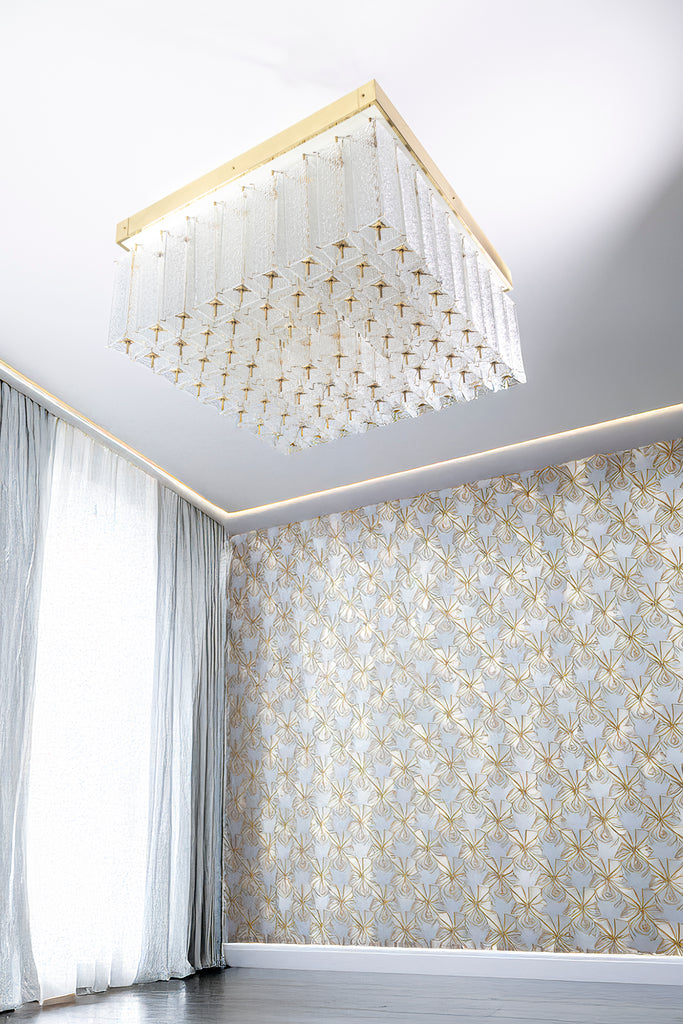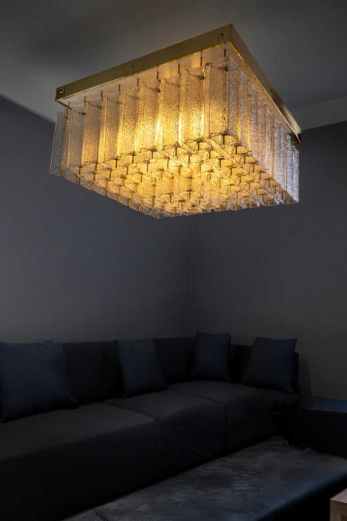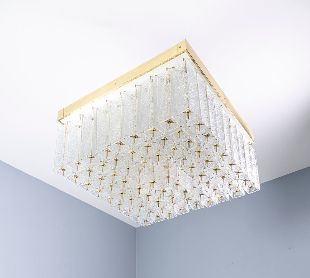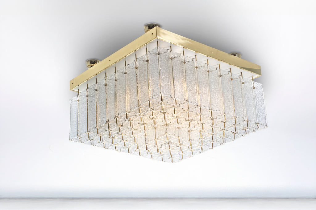Bohemian Flush-Mount Light in Textured Glass & Brass, 1960s