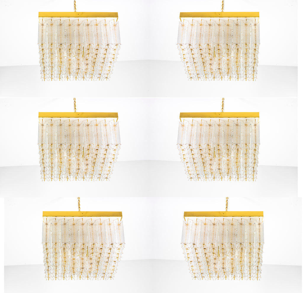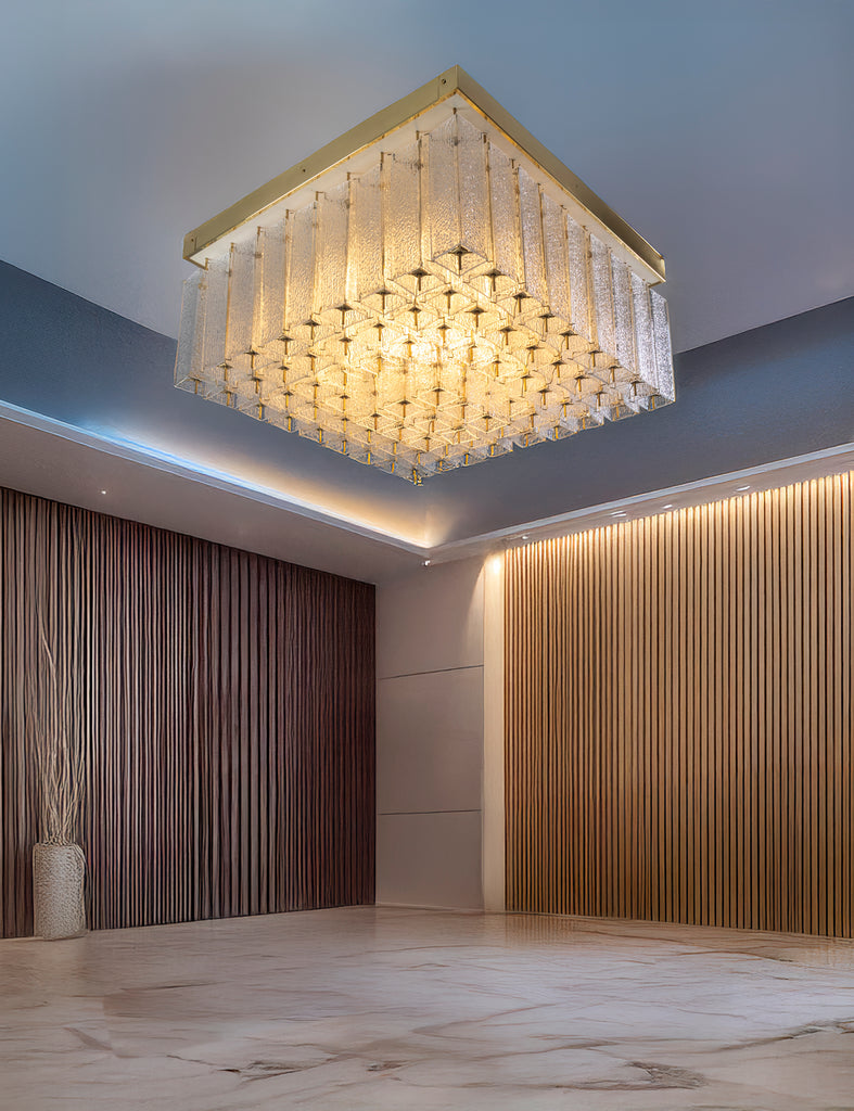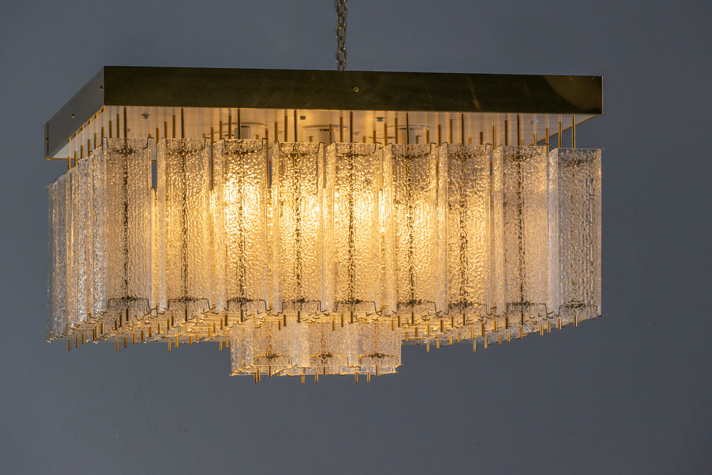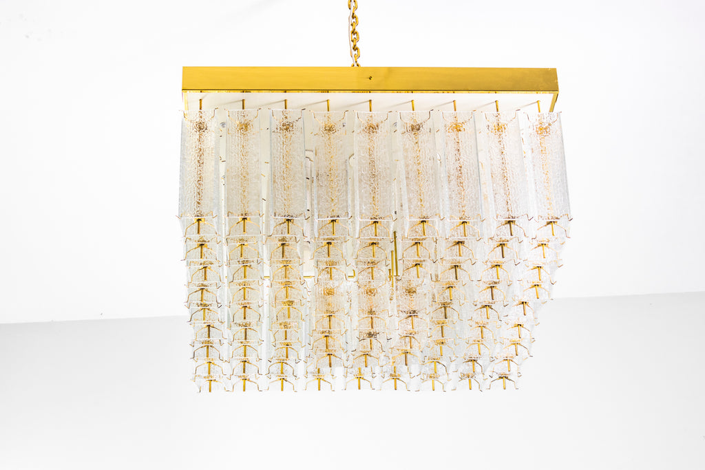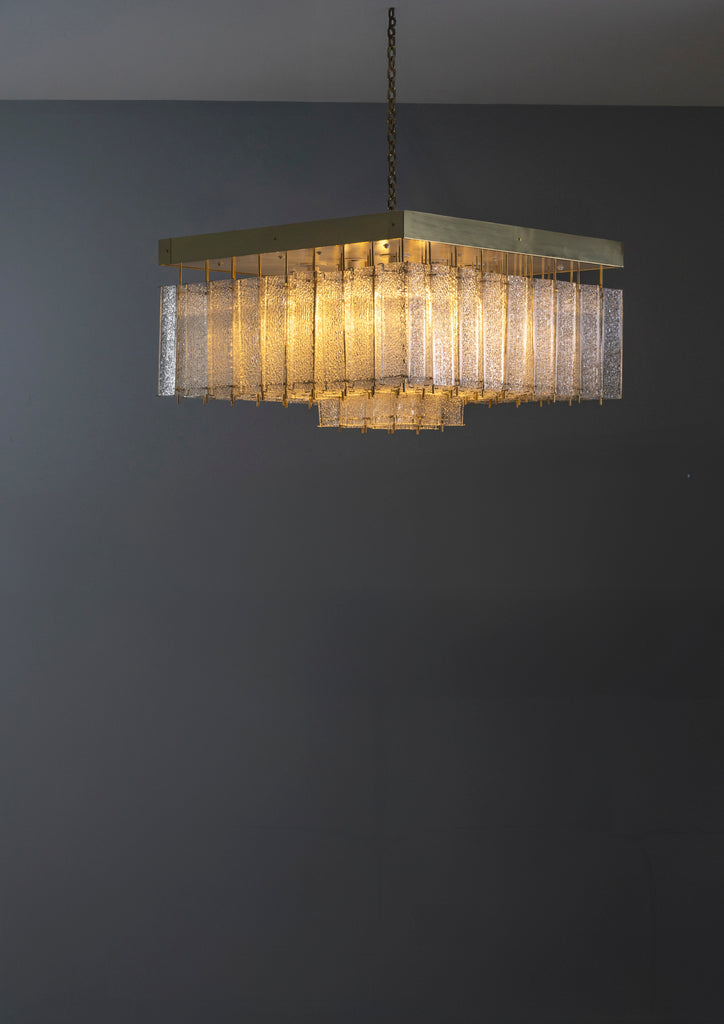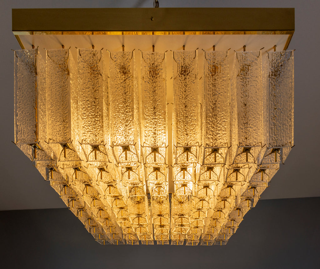 Bohemian Flush-Mount Light in Textured Glass & Brass, 1960s