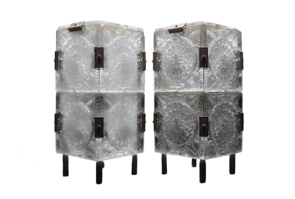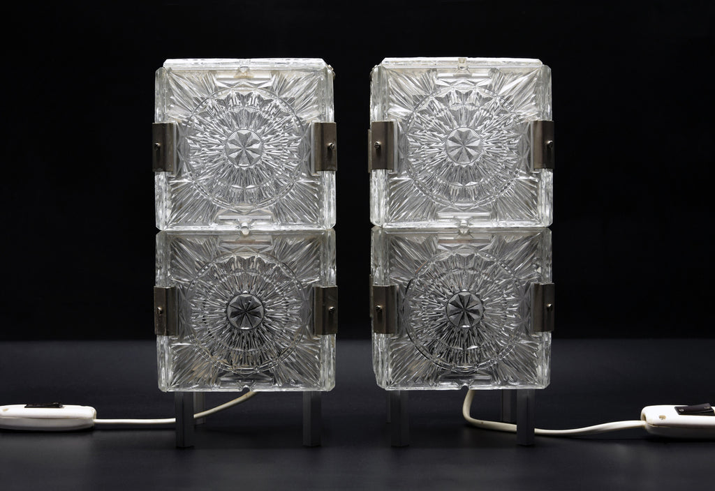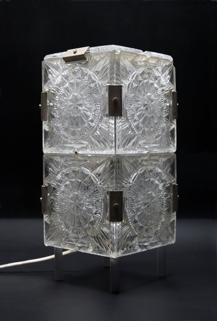 Glass Cube Table Lamp, Jaroslav Beyvl Sr., 1970s, Czechoslovakia
