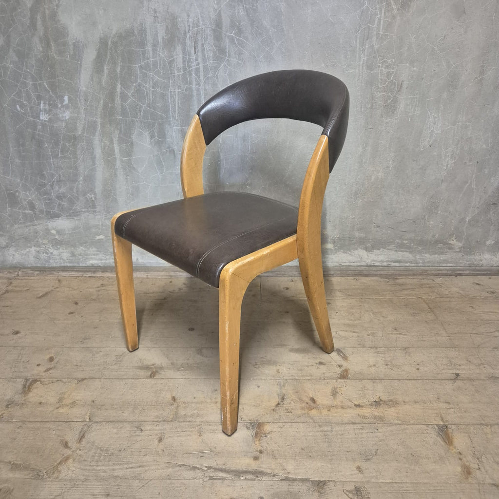 Vintage Curved-Back Dining Chair, Wood & Leatherette, Czechoslovakia, 1970s